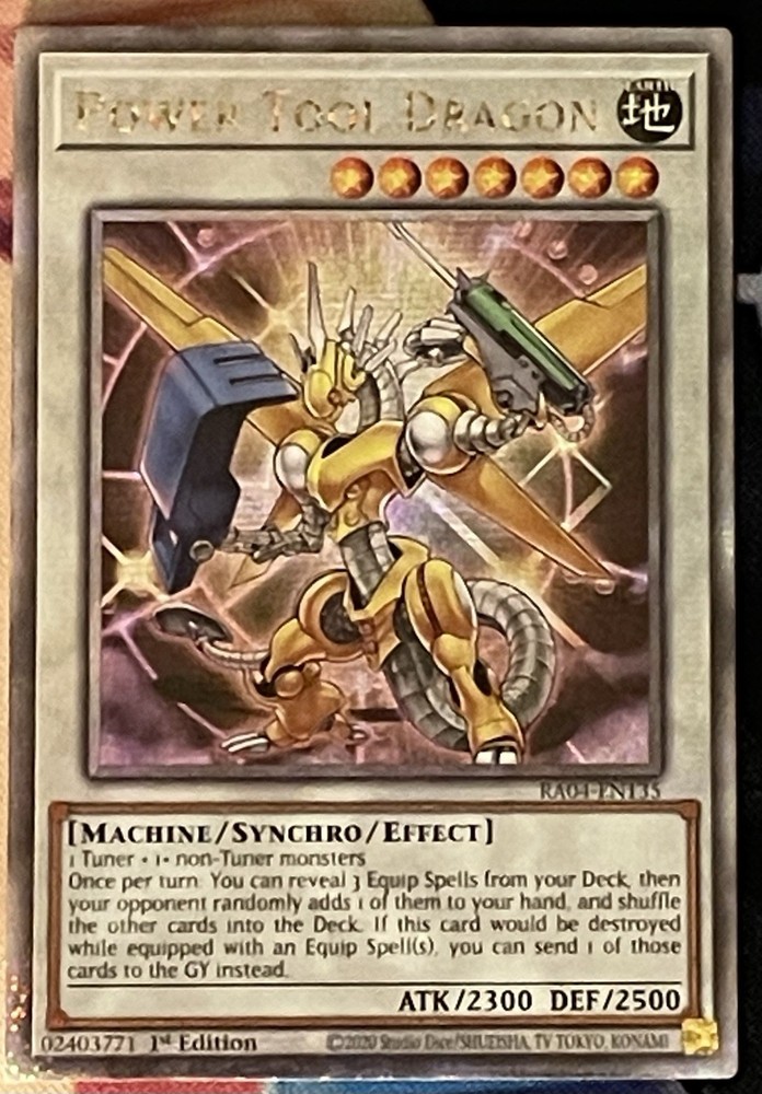 This Yu-Gi-Oh! Power Tool Dragon card is a must-have for any collector or player. With its impressive attributes, including 3000 attack power and 2500 defense/toughness, it can add some serious firepower to your deck. The card features beautiful artwork by Kazuki Takahashi and is a quarter century secret 1st edition. Whether you're a fan of Yami Yugi, Seto Kaiba, or Yugi Muto, this card is sure to impress. It is made of high-quality card stock and comes in a Japanese card size. The card is perfect for anime expo conventions and events. Don't miss your chance to add this limited edition, duel terminal card to your collection.