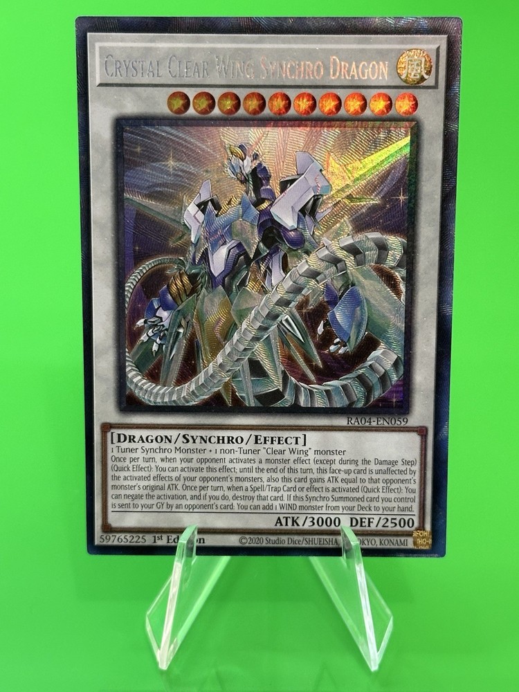 Up for Sale-Yu-Gi-Oh Quarter Century Stampede Crystal Clear Wing Synchro Dragon Collector’s Rare RA04-EN059 NM!!! ***Please make sure to review all photos attached of the current condition of the item posted, before placing a bid or purchasing on the current lot item*** *** Card was placed directly into a Perfect Fit Sleeve and Top Loader *** *** Top Loader will be included with purchase. *** *** Item will be securely packaged, and bubble wrapped with purchase and sent out in a bubble mailer*** *** Please see shipping and payment details. Pricing is based on economy shipping rates. Shipping is $3.00 within Canada – $5.00 USA– International destinations – please reference international shipping rates, as postal shipping rates may vary *** *** Combined shipping orders accepted *** *** Canada - .25 each additional item, USA - .25 each additional item, International - .50 each additional item *** *** Please make any corrections to your address prior to payment. *** ***Please reach out anytime with any additional question or inquiries you may have. *** *Thanks for stopping by, we look forwards to seeing you back soon!!!*