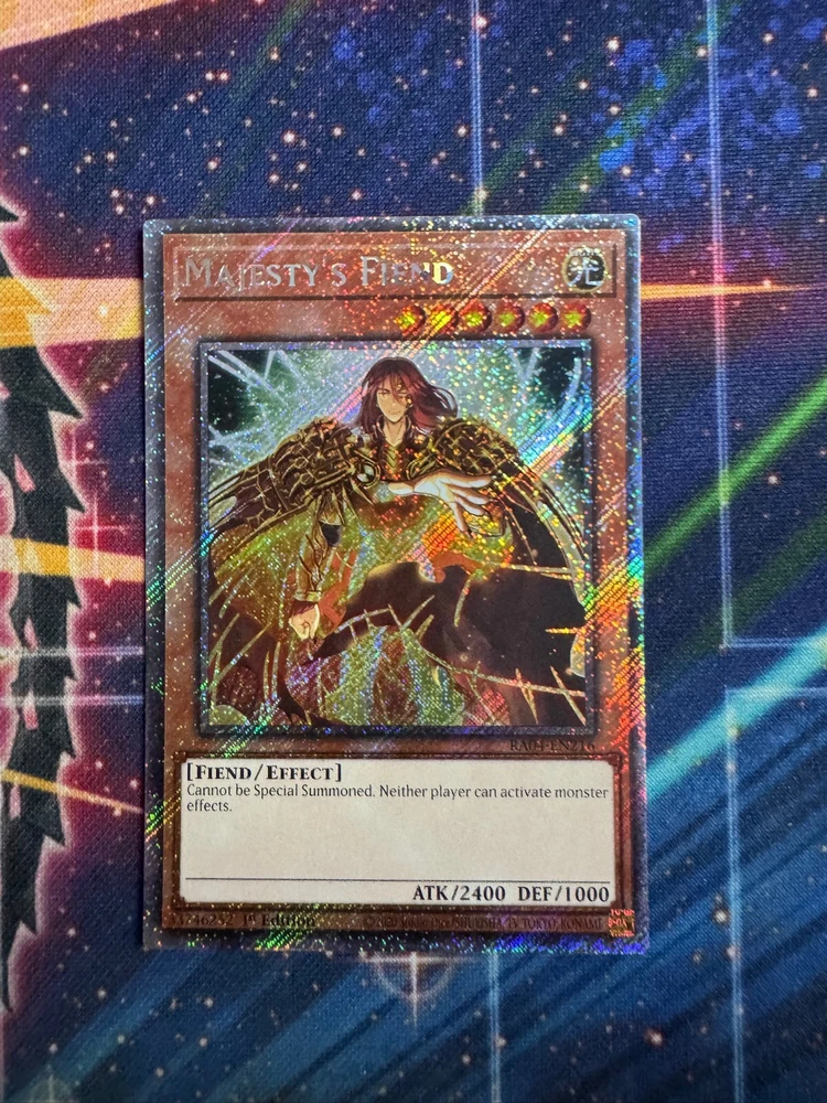 This Yu-Gi-Oh! Quarter Century Stampede Platinum Secret Rare card is absolutely stunning! The artwork pops with incredible holographic detail, and the card arrived in flawless near-mint condition. The rarity makes it a must-have for serious collectors or duelists wanting to upgrade their deck. Very impressive quality—highly recommended for anyone who loves premium Yu-Gi-Oh! cards!
