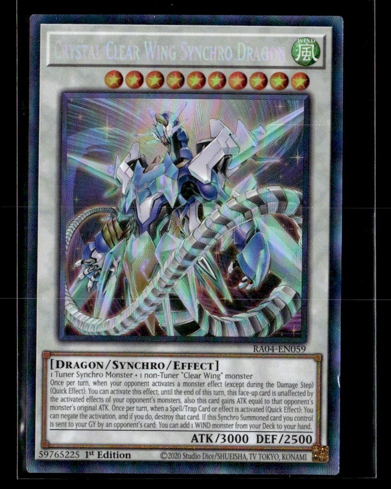 This is a nice example of a Yu-Gi-Oh #RA04-EN059 Crystal Clear Wing Synchro Dragon Other important information about this card: 1st Edition Holo Ghost Rare In 2024 Crystal Clear Wing Synchro Dragon played for the . Please check out our other listings for more great cards.