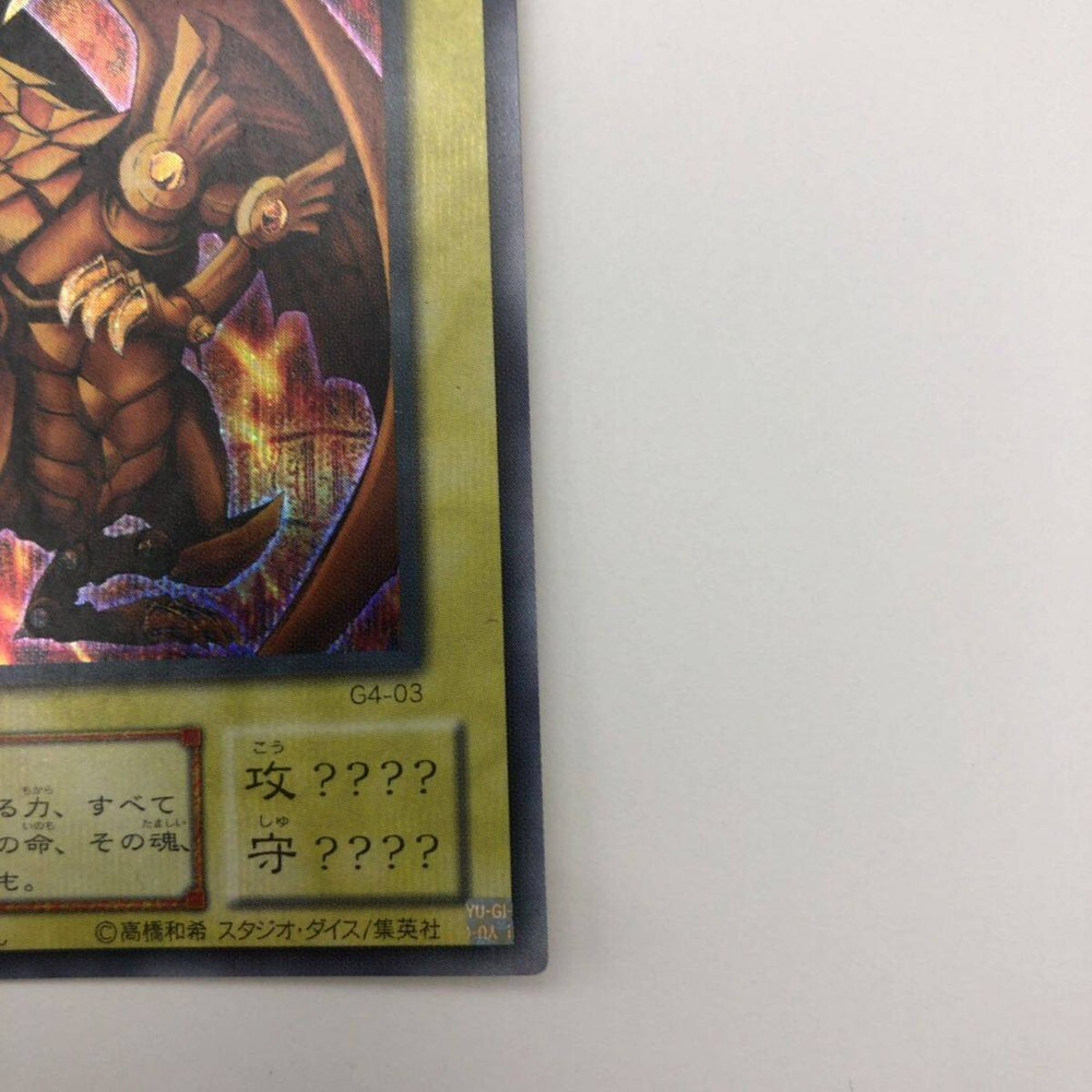 Item Title Yu-Gi-Oh! Ra'S Winged God Dragon Secret G4-03 2 JPN DUel Monster Limited Edition Payment Supports managed payments Please pay within 5 days after auction is finished. About Us We are located in Japan. It's our pleasure to make you happy by proposing our recommend item. If you have any questions or request about items, please feel free to ask us. International Buyers - Please Note: -Import duties, taxes, and charges are not included in the item price or shipping charges. These charges are the buyer's responsibility. -Please check with your country's customs office to determine what these additional costs will be prior to bidding/buying. -These charges are normally collected by the delivering freight (shipping) company or when you pick the item up - do not confuse them for additional shipping charges. -We do not mark merchandise values below value or mark items as - gifts - The US and International government regulations prohibit such behavior. Thank you for your understanding.