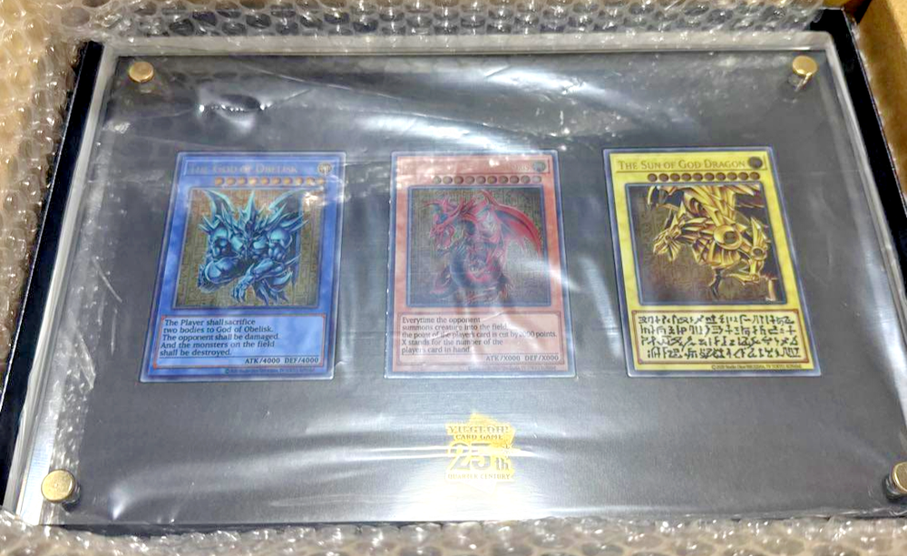 * Description All my products are 100% Authentic. Please feel free to contact us if you have any question. 🔥Yu-Gi-Oh! OCG 25th Anniversary 🔥 “Three Illusions” Special Card Set (made of stainless steel) 🎉 A must-have for Yugioh fans! 🎉 Special edition faithfully reproducing the “Three Illusions” illustrations! 💎 Limited to 25,000 units! 💎 Comes with a serial number! 💎 Luxurious stainless steel edition! 📦 Set contents “Osiris' Sky Dragon” (stainless steel) “Obelisk Giant Warrior” (stainless steel) “Ra's Winged Dragon” (stainless steel) Comes with a special display case ✨ Perfect for collecting or as a souvenir! ✨ 📮 Shipping 🚀 Carefully packed and shipped quickly! 📦 Trackable for peace of mind! 🎁 Don't miss out on this special item! 🎁 * Shipping We ship using FedEx, DHL and Japan Post. * Payment We usually ship within 5~10 business days of receiving cleared payment. * International Buyers - Please Note: Import duties, taxes and charges are not included in the item price or shipping charges.These charges are the buyers responsibility.Please check with your countrys customs office to determine what these additional costs will be prior to bidding/buying. These charges are normally collected by the delivering freight (shipping) company or when you pick the item up do not confuse them for additional shipping charges. I do not mark merchandise values below value or mark items as "gifts" - US and International government regulations prohibit such behavior.