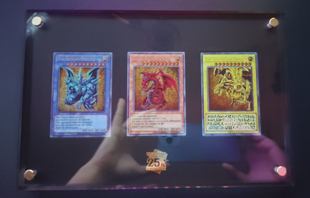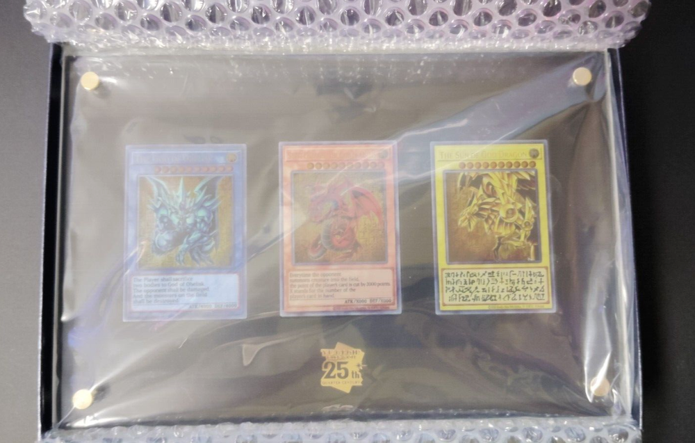 Description This special item is a reproduction of an illustration of the “Three Phantom Gods” from the original work. Set content "Obellisk Giant Soldier" "Osiris Sky Dragon" "Ra's Winged Dragon" Special Card (made of stainless steel): 1 each Special display case (made of acrylic): 1 piece Metal legs: 2 Assembly diagram: 1 sheet Product specifications Product size (with metal foot attached): H180mm x W270mm x D79mm Limited to 25000 pieces The serial number is printed on the back of the characteristic display case. International Buyers - Please Note: Import duties, taxes and charges are not included in the item price or shipping charges. These charges are the buyer's responsibility. Please check with your country's customs office to determine what these additional costs will be prior to bidding/buying. These charges are normally collected by the delivering freight(shipping) company or when you pick the item up -do not confuse them for additional shipping charges. We do not mark merchandise values below value or mark item as "gift" -US and international government regulations prohibit such behavior.