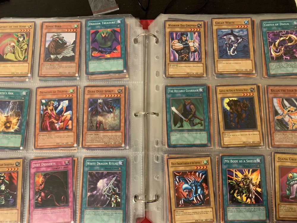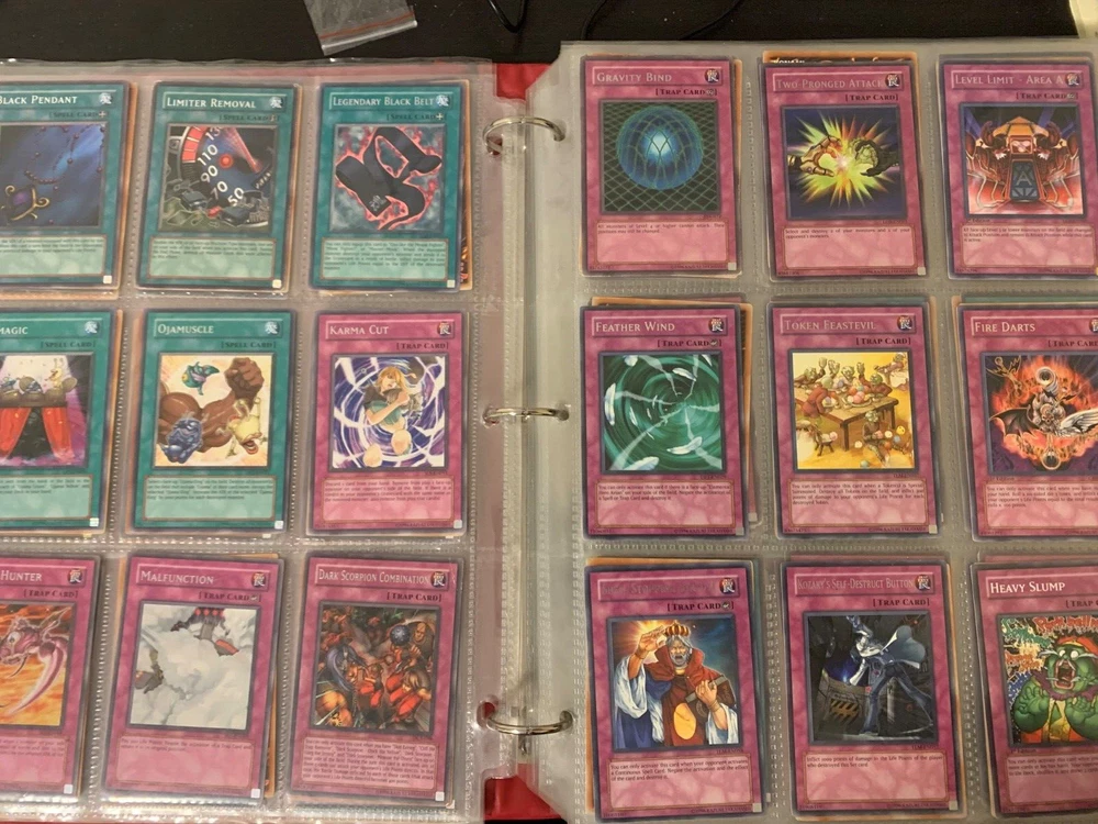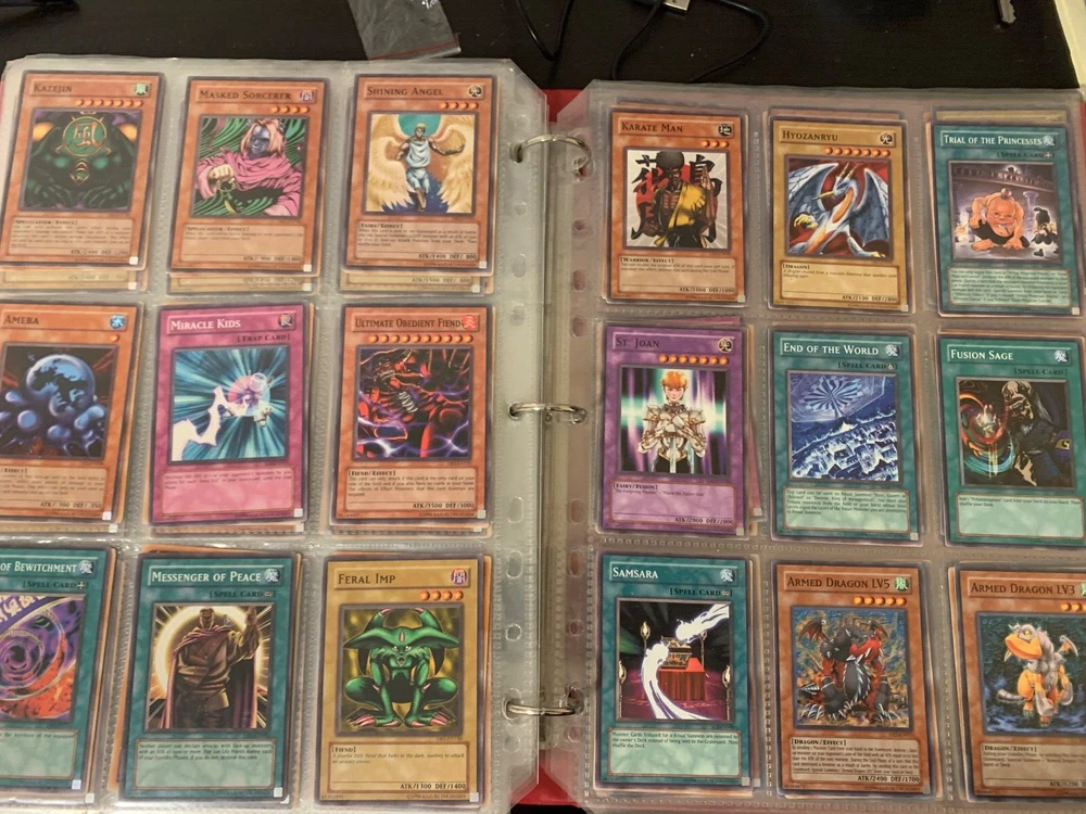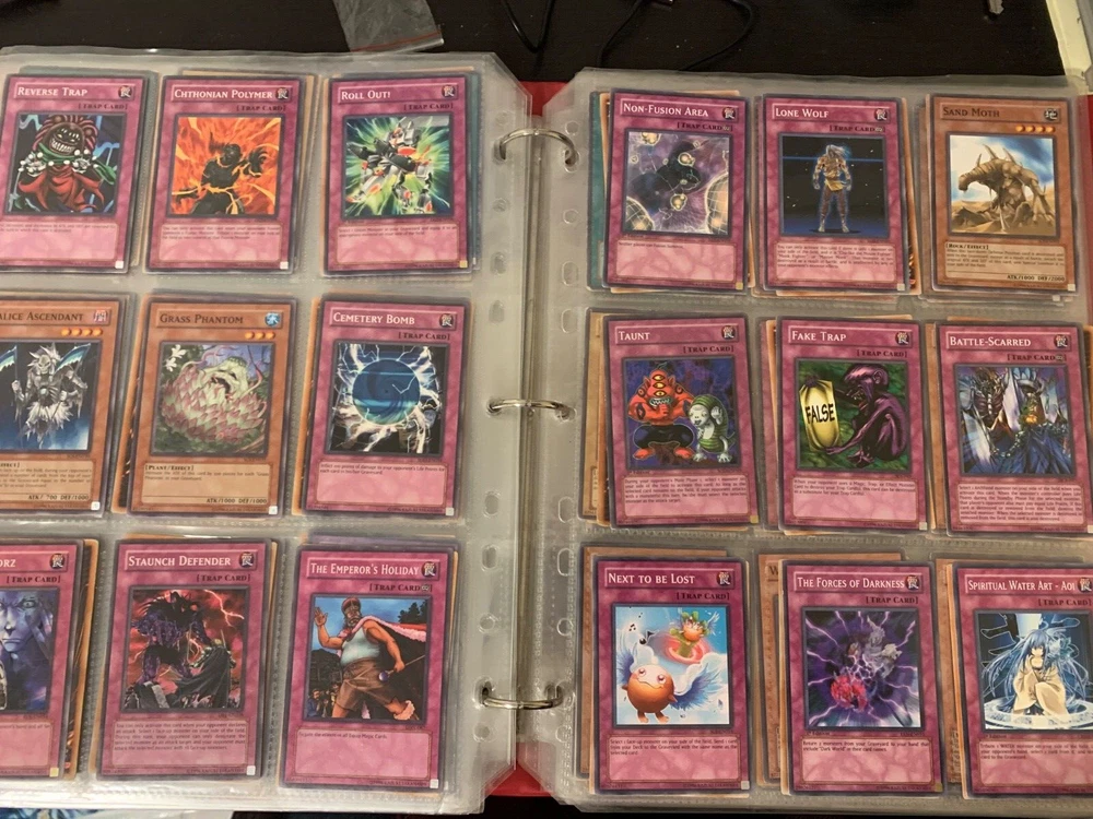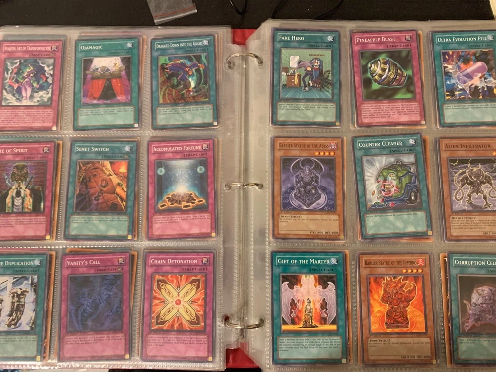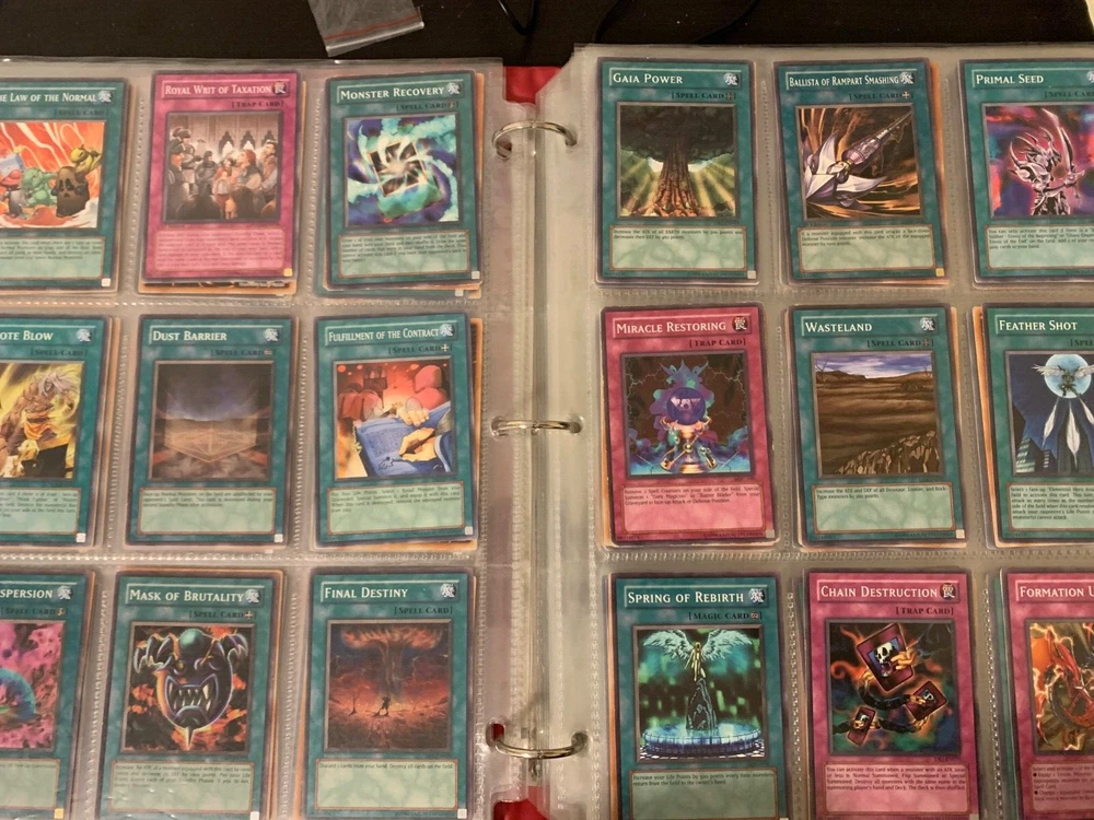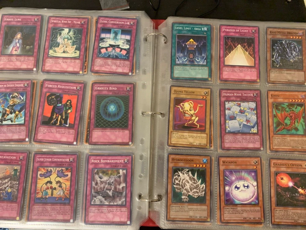 This Yu-Gi-Oh! TCG card lot includes over 400 cards, featuring vintage sets from the first sets up to around the GX era of the series. Cards are stored in sheets and come in a binder. Most cards are near mint, some are lightly played, and very few are worse. Several cards are not pictured. I’m including a Winged Dragon of Ra promo card in played condition. Some sets (from memory) include: Enemy of Justice Shadow of Infinity Elemental Energy Cyberdark Impact Power of the Duelist Cybernetic Revolution The Lost Millenium There are very few duplicates.