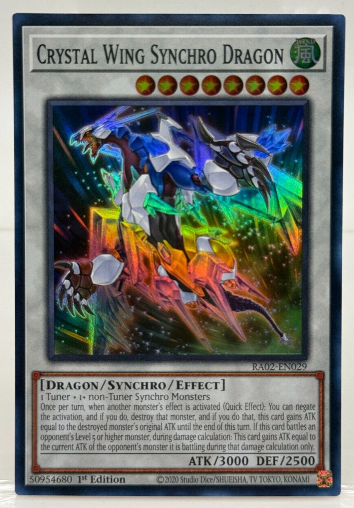 Super Rare Crystal Wing Synchro Dragon from Yu-Gi-Oh! TCG 25th Anniversary Rarity Collection II. Card was pulled from new pack and immediately placed into sleeve protector. Card is in NM/M condition.