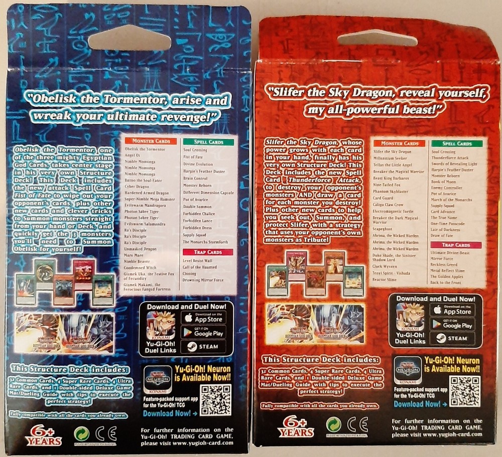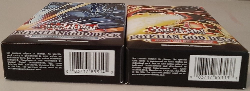 Item description: Yu-Gi-Oh! TCG: Egyptian God Decks: Slifer The Sky Dragon & Obelisk The Tormentor Set includes: 1x Egyptian God Deck Slifer the Sky Dragon, & 1x Egyptian God Deck Obelisk the Tormentor. Awaken the power of the Egyptian God Cards! If you've ever wanted to build a Deck around an Egyptian God Card but didn't know where to start, look no further than the Egyptian God Decks! Egyptian God Deck: Slifer the Sky Dragon and Egyptian God Deck: Obelisk the Tormentor serve up simple strategies to Summon and win with either Slifer the Sky Dragon or Obelisk the Tormentor. Each Egyptian God Deck contains 40 cards: 4 Ultra Rares, 4 Super Rares, 32 Commons, 1 Deluxe Game Mat/Dueling Guide. Condition: ***Brand New, Original Packaging, Officially Licensed. *See Photos Shipping: Shipping via USPS w/tracking Please allow 7-14 days shipping/handling time Item will be shipped in a larger box w/plenty of packaging material to secure item Due to increased shipping cost, which I cover for all my items I can only ship within the continental U.S. (sorry HI & AK) Contact me if you would like to cover shipping outside the continental U.S. Combined Shipping: We do offer combined shipping! Please contact for further details or add multiple items to your cart and "Request Total". Terms and Conditions: If you have any questions please email us before purchasing. Emails may take up to 48 Hours before they are answered. Return Policy: Please contact before you return the item. This product cannot be returned after it has been opened. Returns are accepted within 30 days of when the item was shipped. Buyer pays for return shipping. Refund for item only, not shipping. Returned item must be returned in condition it was sent as seen it posted photos. As seller pays for shipping & handling cost, it will be deducted from refund of returned items. Payment Terms: Payment required within 7 days after this auction ends. After 10 days, we will open a case with eBay. Taxes are automatically added by eBay. Only purchase if you intend on paying! Thanks for looking!