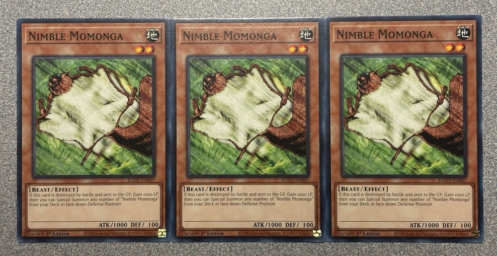 | Card Text | When this card is destroyed by battle and sent to the Graveyard: Gain 1000 Life Points, then you can Special Summon any number of "Nimble Momongas" from your Deck in face-down Defense Position. |
