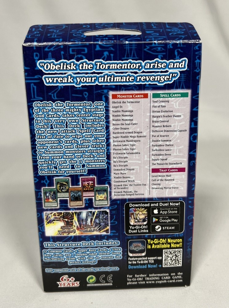 Just got this factory sealed deck and wow - the packaging is pristine! The plastic wrap is perfectly intact, corners are sharp, and you can tell it's never been opened. Obelisk looks absolutely menacing on the front artwork. So pumped to add this legendary god card to my collection!