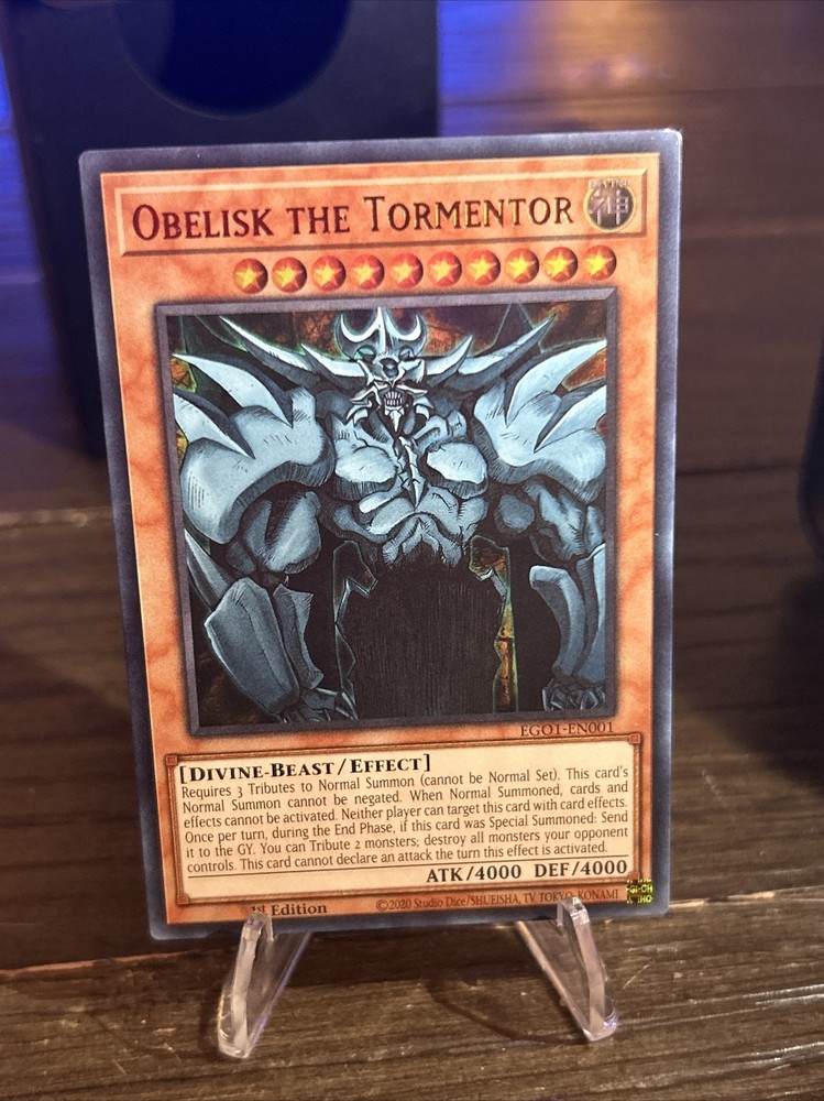 Yu-Gi-Oh! TCG Obelisk the Tormentor EG01-EN001. Small Knick in corner otherwise card in great condition , comes with card sleeve