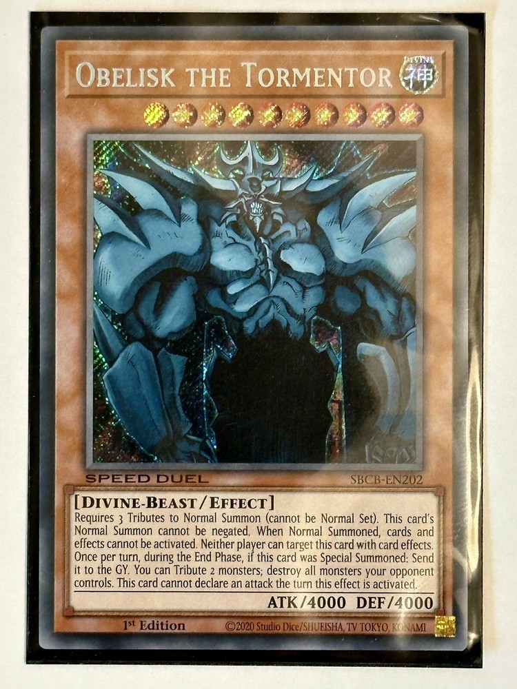 Yu-Gi-Oh! TCG card features Obelisk The Tormentor, a powerful Divine-Beast/Effect creature with 4000 attack and defense. The card is from the Legendary Decks II set and has the card number LDK2-ENS02, making it a highly sought after Ultra Rare card for collectors. In addition to its rarity and unique features, the card also boasts a stunning design that will impress any Yu-Gi-Oh! fan. Whether you're a collector or a player, this card is a valuable addition to any collection. Don't miss your chance to own this incredible piece of Yu-Gi-Oh! history. Hologram Edition. Excellent condition. Just out of the box.
