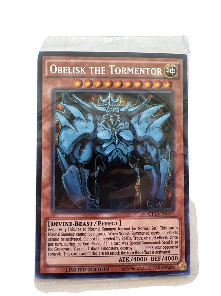 This Obelisk the Tormentor card is stunning—the gold foil really makes it pop, and the 1st edition printing adds serious collector value. Arrived perfectly protected in a clear sleeve, just as described. A must-have for any Yu-Gi-Oh! fan or collector looking for premium quality.