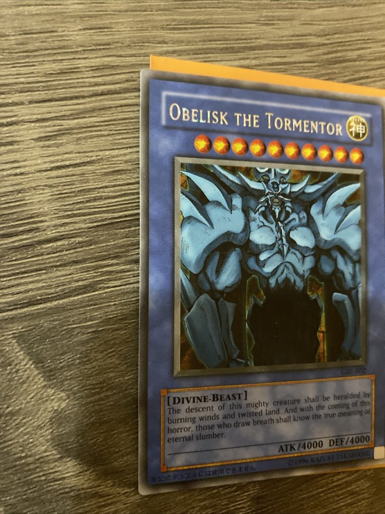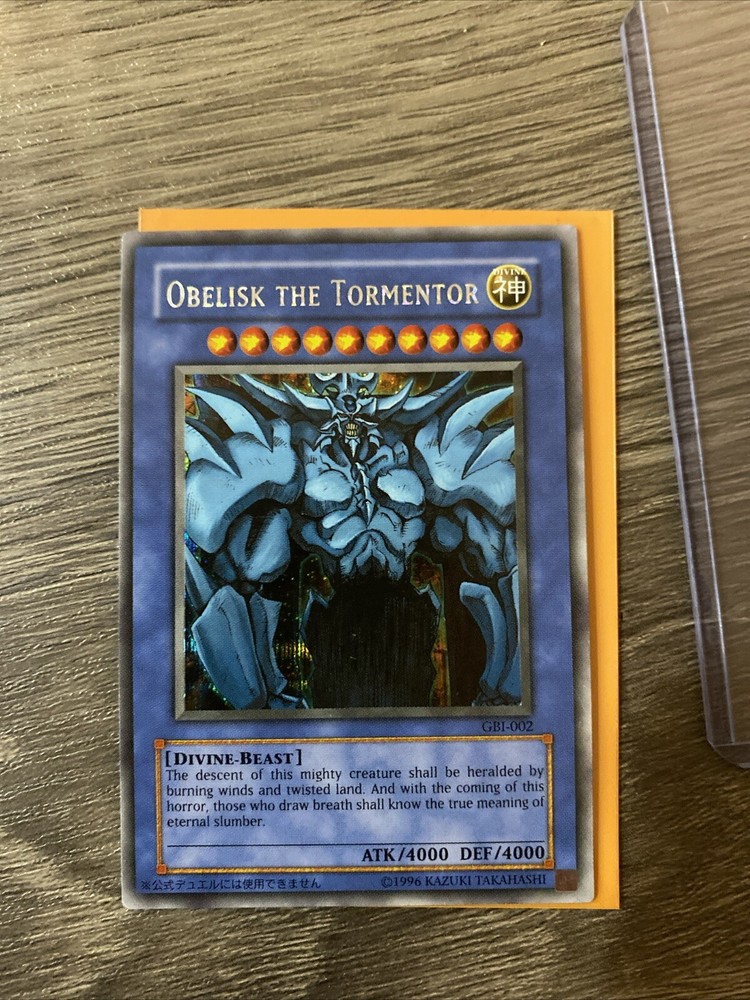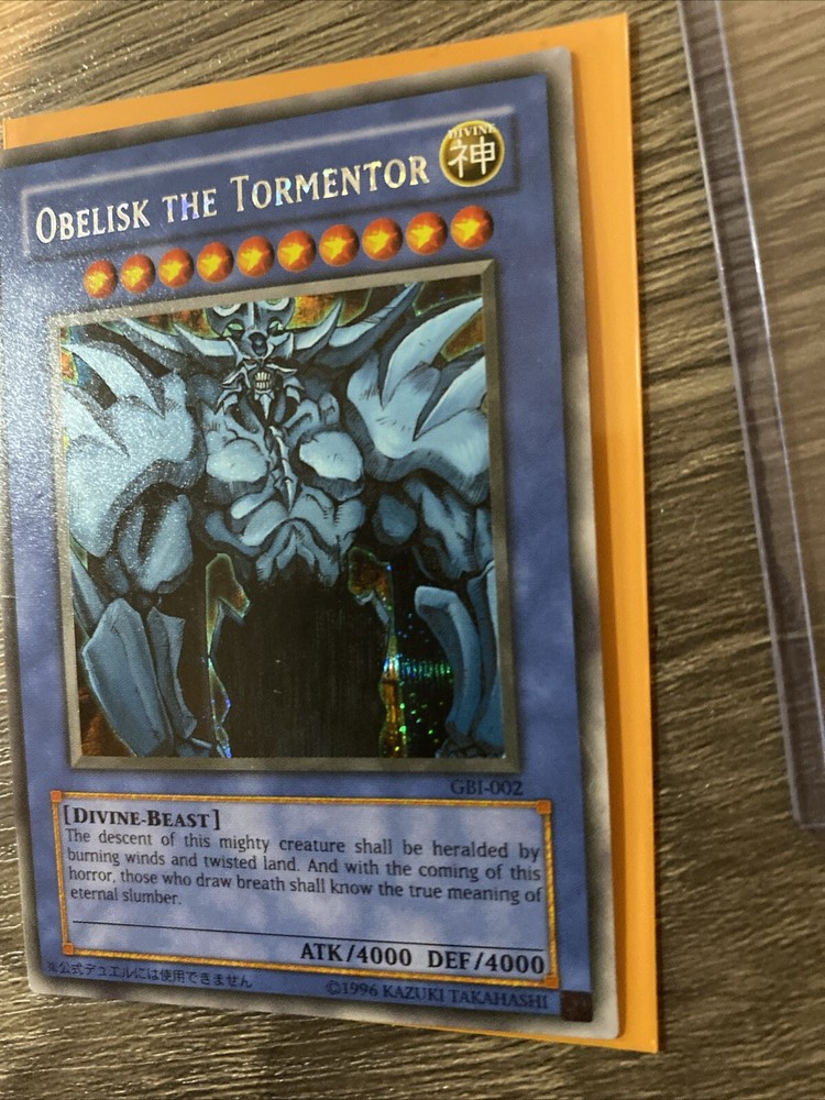Experience the power of Obelisk The Tormentor with this Secret Rare card from the Yu-Gi-Oh! TCG Worldwide Edition Promos set. This Divine-Beast card has 4000 Attack and Defense, making it a force to be reckoned with. Its card number is GBI-002 and it is a Normal card with Unlimited features. Add this card to your collection today and dominate your opponents in the game of Yu-Gi-Oh! This card is perfect for players and collectors alike, and its rarity only adds to its value. Don't miss out on the chance to own this incredible card.