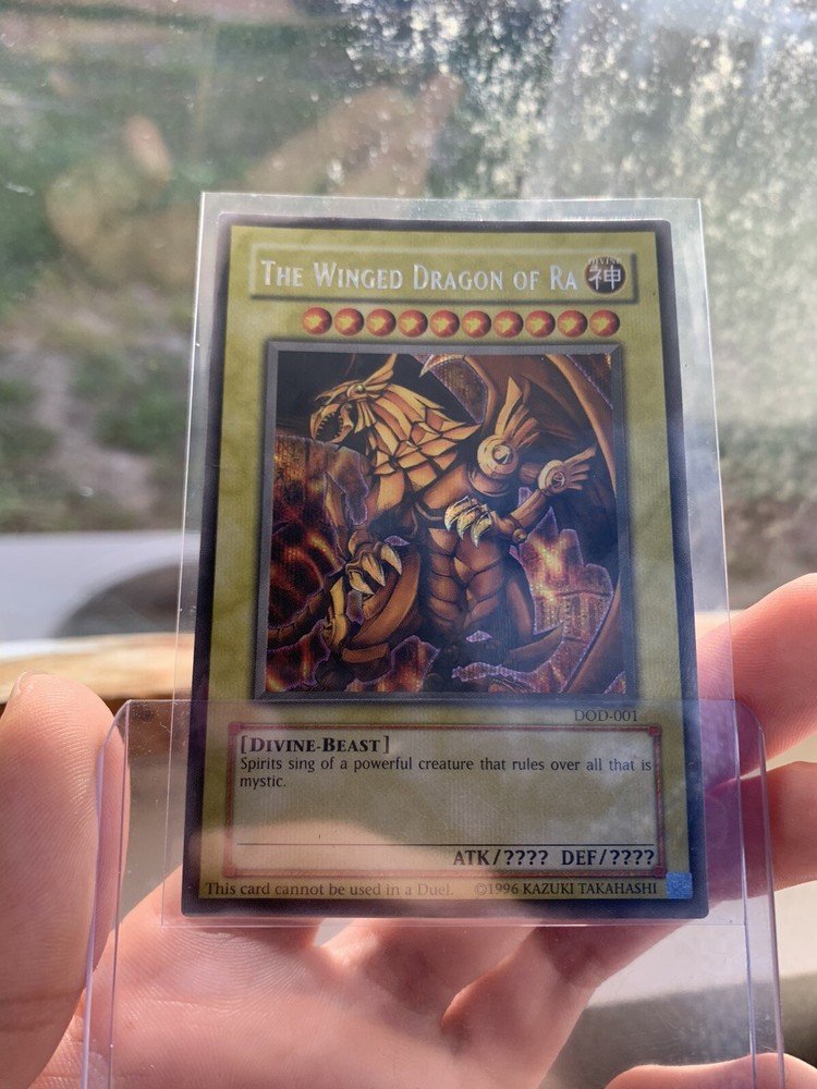 Yu-Gi-Oh! TCG The Winged Dragon of Ra Dawn of Destiny XBOX Promo DOD-001 Limited. Only has a crease on the side besides that great condition. As seen in the pictures...