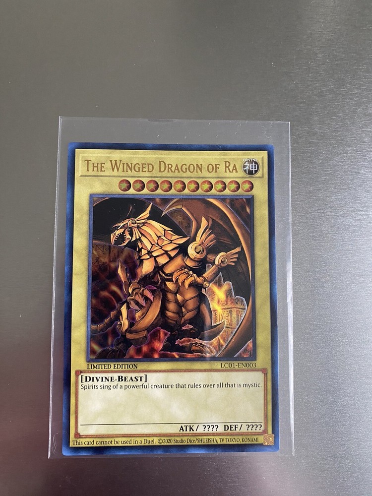 This limited edition Yu-Gi-Oh! TCG card from the Legendary Collection features the powerful and highly sought after The Winged Dragon of Ra. With a rarity of Legendary and a card number of Lc01-En003, this card is a must-have for any serious collector or player. The set is part of the 25th Anniversary Edition and is in near mint or better condition. In addition to its stunning design and collectible value, The Winged Dragon of Ra offers powerful gameplay features that make it a valuable addition to any deck. This card is perfect for fans of the Yu-Gi-Oh! TCG who are looking to enhance their collection or take their gameplay to the next level.