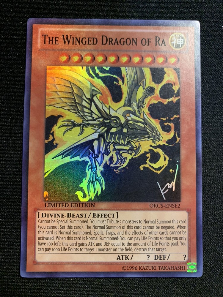 The Yu-Gi-Oh! TCG The Winged Dragon of Ra Order of Chaos: Special Edition ORCS-ENSE2 is a highly sought after collectible card featuring the powerful Divine-Beast monster known as The Winged Dragon of Ra. As a Super Rare card from the Order of Chaos set, this limited edition card is a must-have for any Yu-Gi-Oh! TCG collector. With its divine attributes and special features, this card is sure to be a valuable addition to any card collection.
