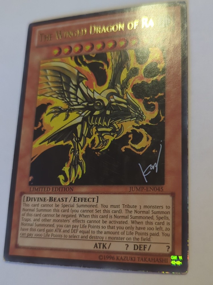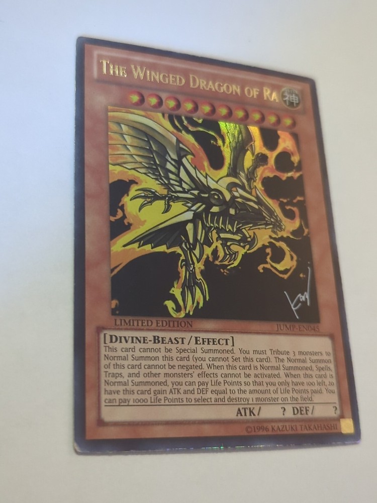 Yu-Gi-Oh! TCG The Winged Dragon of Ra (alternate art) 2019 JUMP VLP. This card is very lightly played. *All cards sold will be inside of a penny sleeve and top load card holder. Packaging will be in a bubble envelope for extra protection.* **In an attempt to empty my collection, every order will come with a gift of additional sleeved cards of various conditions that may fit the theme/archetype (depending on what's remaining in my collection). The bigger the sale, the bigger the gift!**
