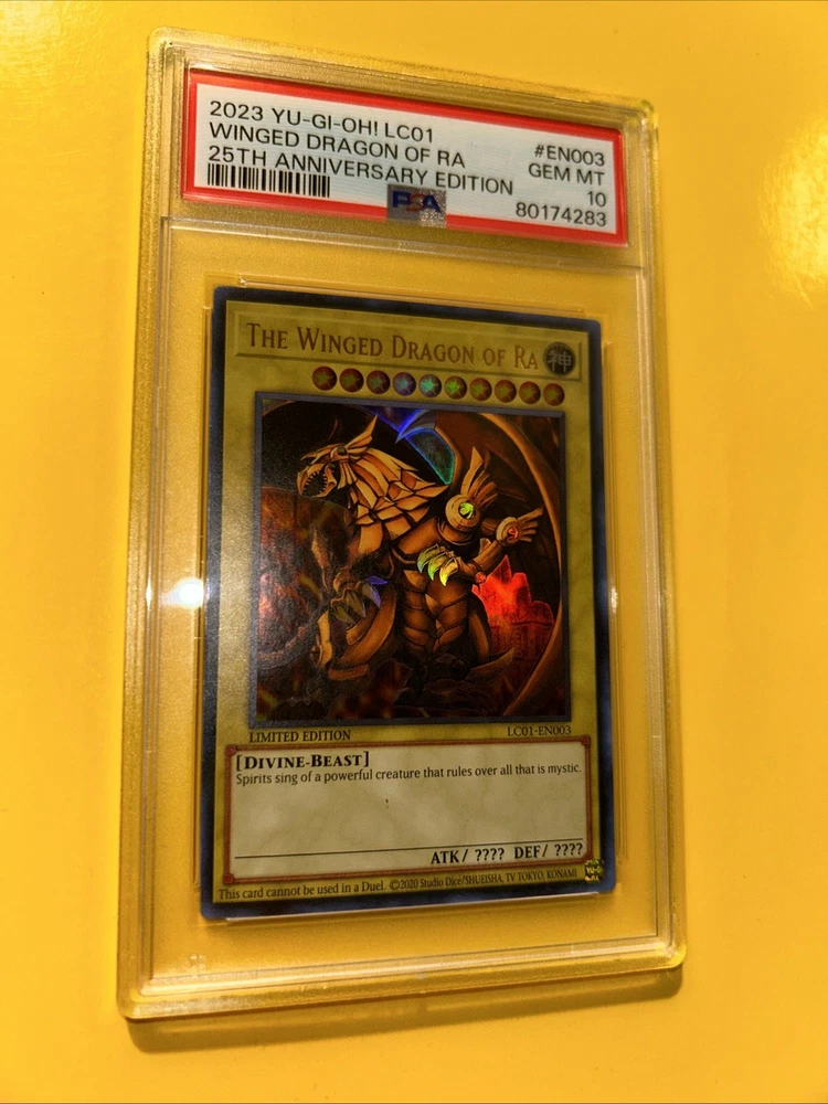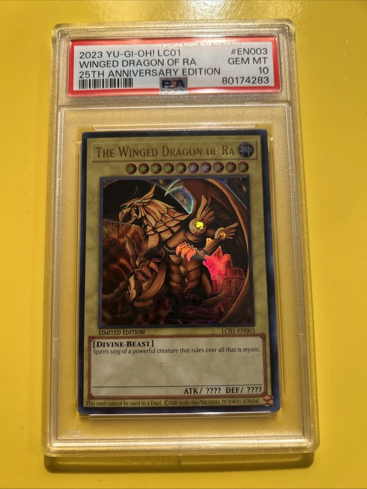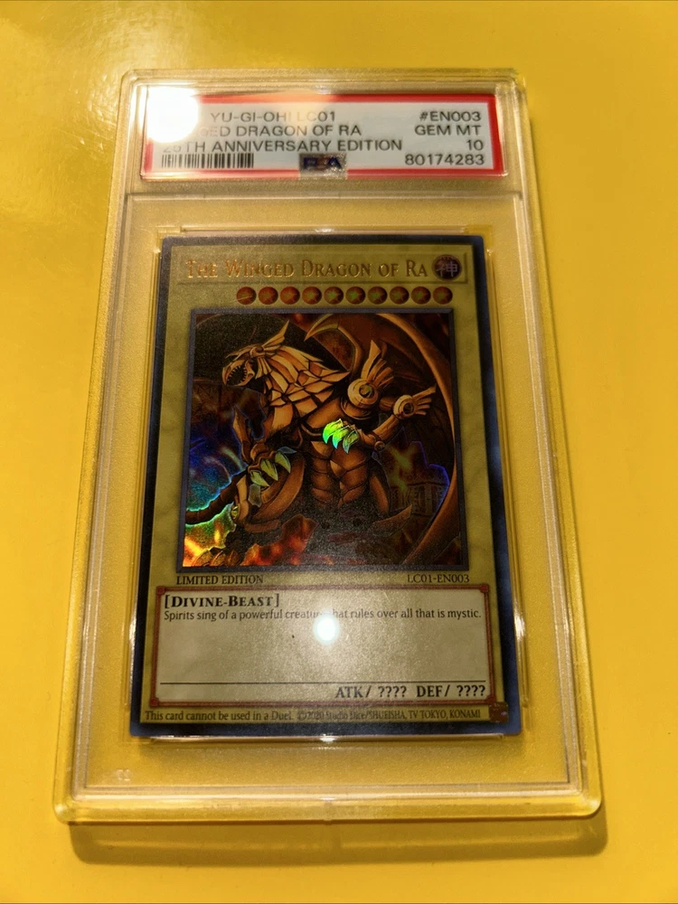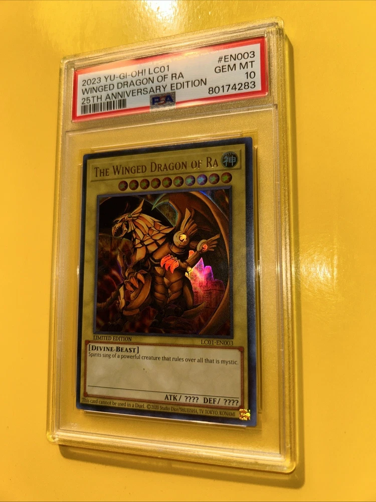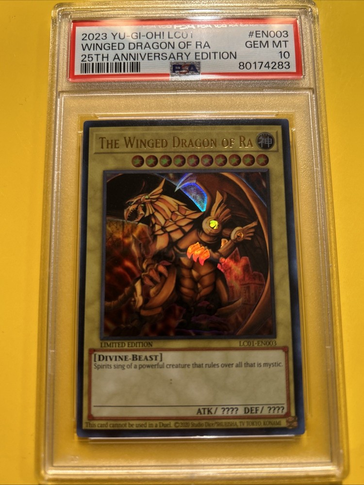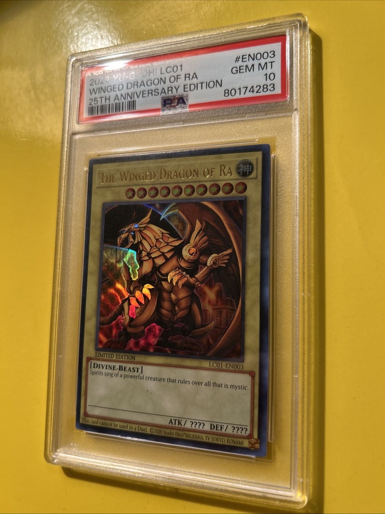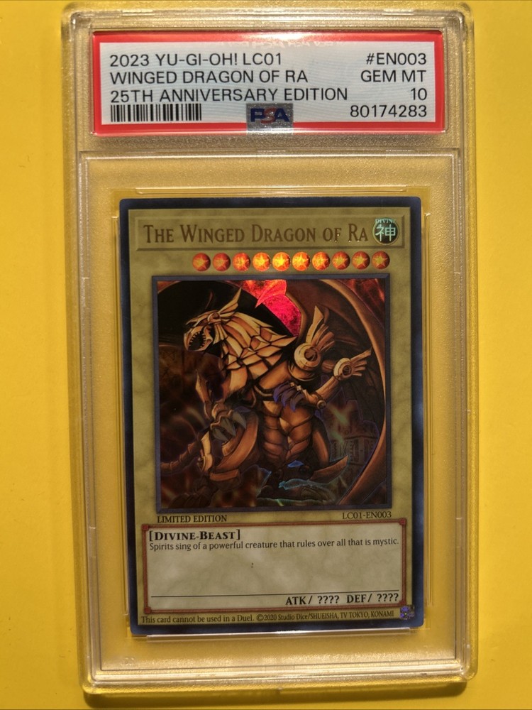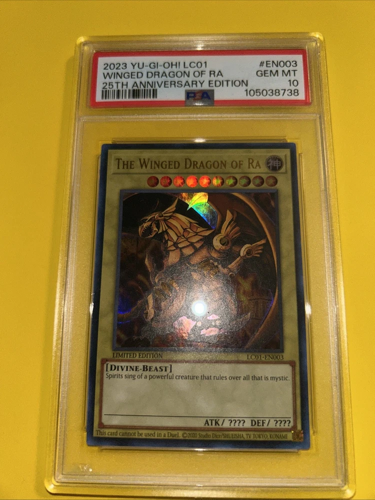 YuGiOh! THE WINGED DRAGON OF RA #LC01-EN003🔥PSA 10 GEM🔥LIMITED ED-2023 ULTRA RARE. POP 245………. PLEASE VIEW PICS ITS THE EXACT CARDS IM SELLING. 80174283 PSA 10 and 105038738 PSA 10. PLEASE VIEW PICSCAND MORE THEN WELCOME TO MESSAGE WHICH PSA YOU LIKE.