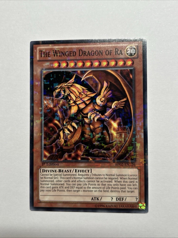 Lassen Sie sich von "Yu-Gi-Oh! Der geflügelte Drache von Ra" in Mosaic Rare 1. Edition begeistern und bereichern Sie Ihre Sammlung mit diesem beeindruckenden Göttlichen Ungeheuer. Die Karte überzeugt durch ihren Holo-Oberflächeneffekt, der jedem Sammlerherz höherschlagen lässt. Mit der Altersempfehlung ab 6 Jahren ist sie ein frühreifes Sammlerstück, das nahezu neuwertige Qualität aufweist. Mit dem Kartenzustand "Near Mint or Better" garantiert Ihnen das Sammlerstück aus dem Jahr 2012 erstklassige Qualität und Langlebigkeit. Hergestellt von Konami in Belgien, verspricht diese englischsprachige Karte mit der Größe einer japanischen Karte ein authentisches Spielerlebnis. Obwohl sie nicht mit einem Autogramm versehen ist, steht diese Karte der legendären Marik Ishtar-Charaktere in nichts nach und ist ein Muss für jeden Yu-Gi-Oh! TCG-Enthusiasten.