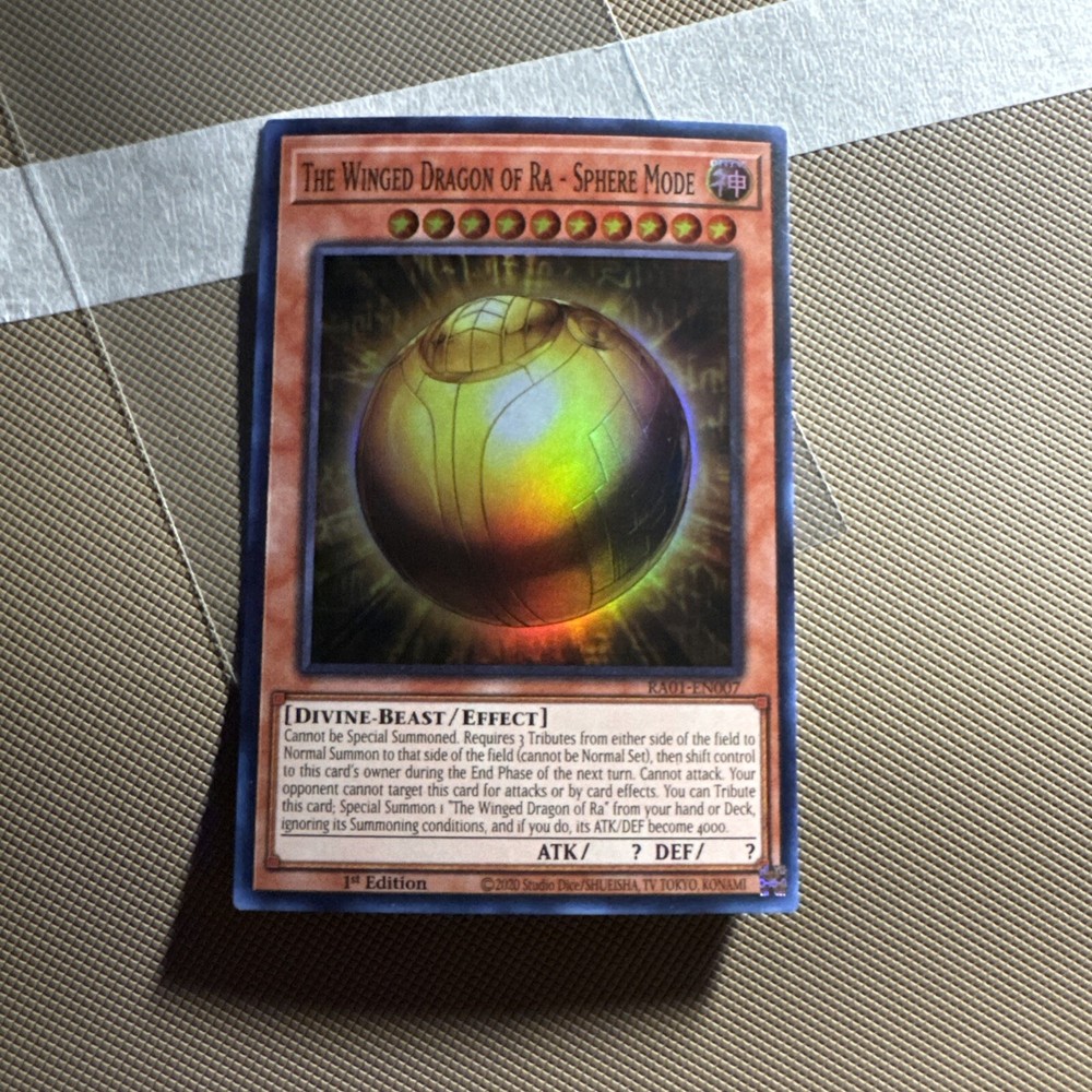 YuGiOh - The Winged Dragon Of Ra - RA01-EN007 1st Edition Super Rare - NM: This Yu-Gi-Oh! TCG card is a highly sought-after collectible for fans of the game. Featuring The Winged Dragon of Ra, this Super Rare card is a must-have for any serious collector. With its 1st Edition status, this card is a rare find that will surely stand out in any collection. Get your hands on this iconic card and add it to your Yu-Gi-Oh! TCG deck today.