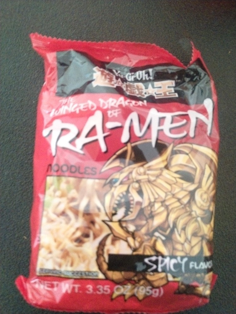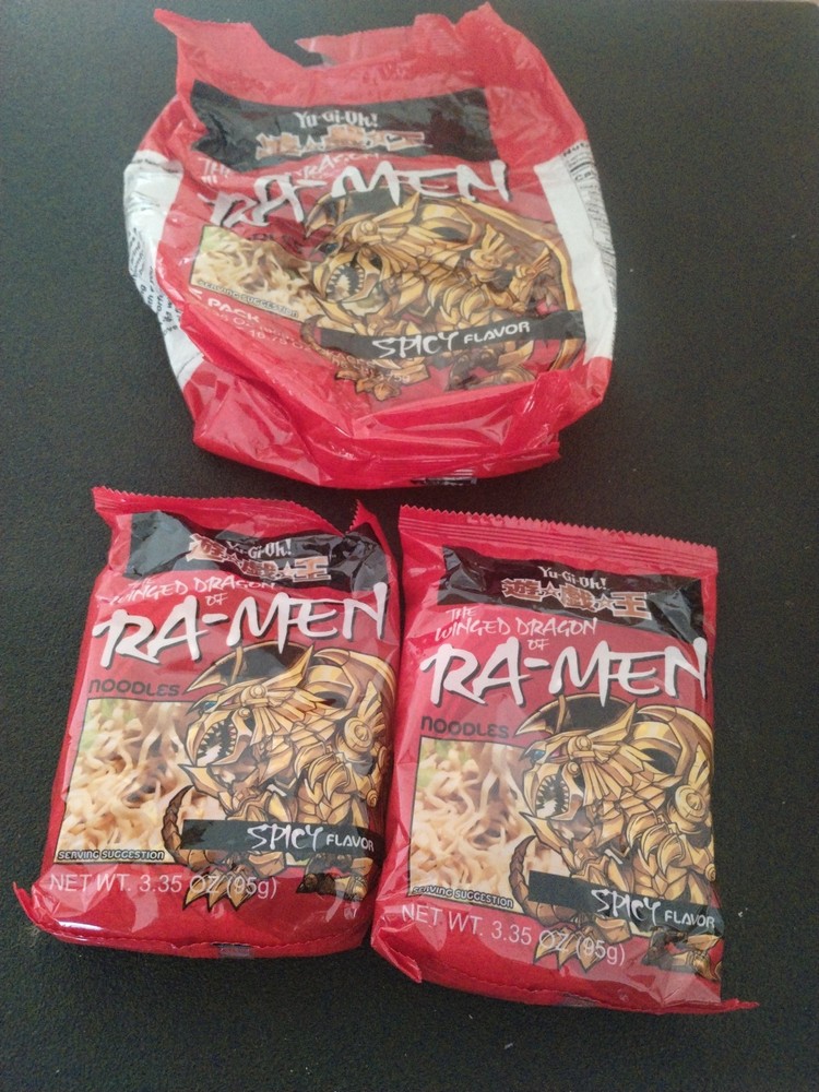 Yu-Gi-Oh The Winged Dragon Of Ra-men Noodles (Spicy Flavor). 1 single package of 3.35 oz (95g). This is a old vintage product. It is NOT recommended for consuming, though you are free to do what you want with your own free will. I am not responsible for what you do with the product.