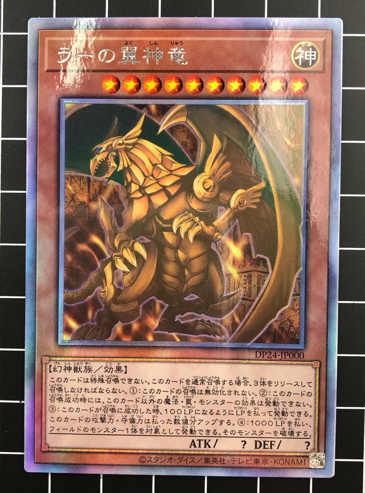 Product name Yu-Gi-Oh The Winged Dragon of Ra DP24-JP000 Holo Konami Japanese "MINT-LP" Condition:"MINT-LP" MT: Mint(10.0/10.0):Almost perfect. There are no chips or stains. NM:Near-Mint(9.0/10.0): Beautiful product. The state immediately after opening. There is a very small chip. EM:Excellent-Mint(8.0/10.0): There are some chips and dirt. EX:Excellent(7.0/10.0): There are noticeable chips and stains. LP:Light-Played(6.0/10.0): There are folds and scratches. Please feel free to contact us as we will upload additional images of the part you care about! Shipping Economy Shipping: Small Pakcket, No Tracking, About 7~30 days Standard Shipping: Small Pakcket, With Tracking, About 7~30 days Expedited Shipping: FedEx or EMS, With Tracking, About 4-7 days We recommend Standard Shipping or higher as it is not tracked by Economy Shipping. (Note: Delivery is currently expected to be delayed than usual. Thank you for your understanding.) The product will be shipped from Japan. Please allow the following time to prepare for shipping. Handling time about 3 business days. Payment Please make a payment within 3 days otherwise automatically unpaid case will be opened. But if you would like to cancel after you buy, you can contact us to cancel. International Buyers -Please Note: Import duties,taxes and charges are not included in the item price or shipping charges. These charges are the buyer's responsibility. Please check with your country's customs office to determine what these additional costs will be prior to bidding/buying. These charges are normally collected by the delivering freight(shipping) company or when you pick the item up. -do not confuse them for additional shipping charges. We do not mark merchandise values below value or mark items as "gifts". -US and International government regulations prohibit such behavior.