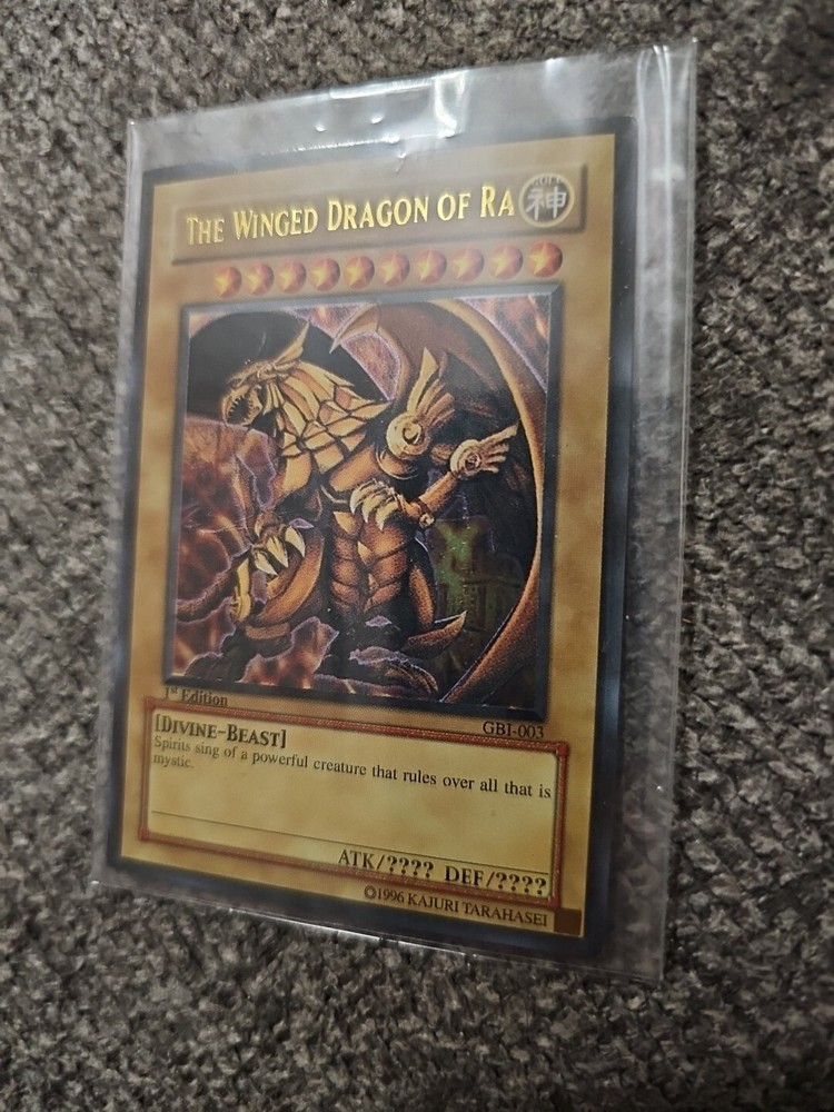 Yu-Gi-Oh! The Winged Dragon of Ra GBI-003 Near Mint! Ultra Rare. Condition is Ungraded. Shipped with USPS Ground Advantage.