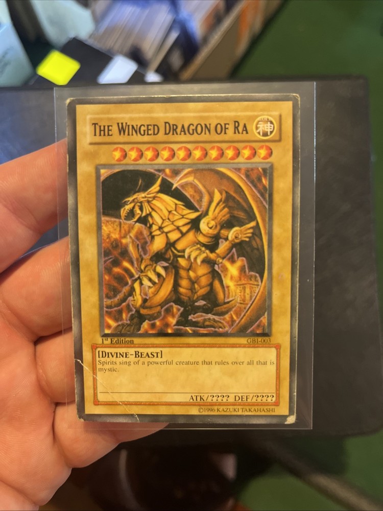 Up for sale is a highly sought-after Yu-Gi-Oh! TCG card, The Winged Dragon of Ra GBI-003, in Ultra Rare 1st Edition NM/LP condition. This card features the powerful Egyptian God, The Winged Dragon of Ra, and is a must-have for any serious collector of the Yu-Gi-Oh! TCG. The card is part of the - Yugi - set and is perfect for both gameplay and collection purposes. Whether you're looking to enhance your deck or complete your collection, this card is sure to impress. Don't miss your chance to own this rare and valuable piece of Yu-Gi-Oh! TCG history.