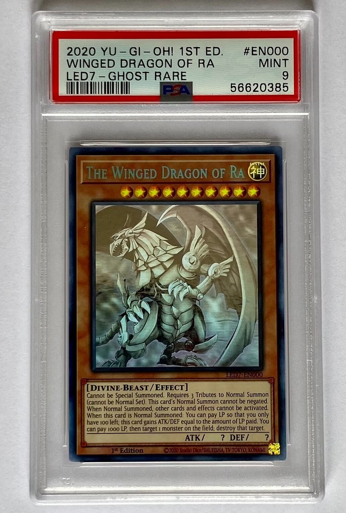 YuGiOh The Winged Dragon of Ra Ghost Rare 1st Edition LED7EN000 PSA 9 (US print)