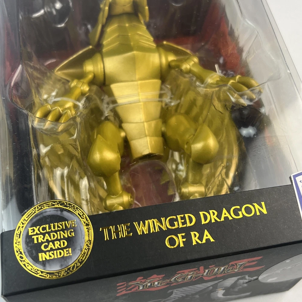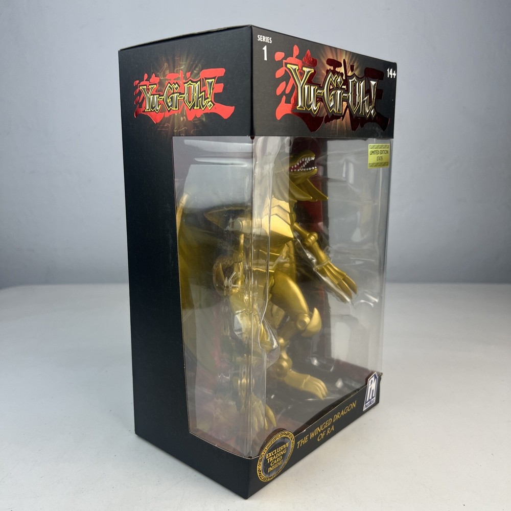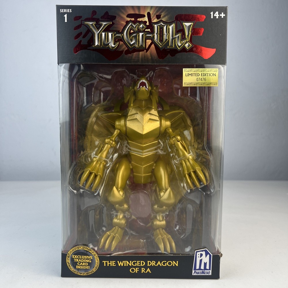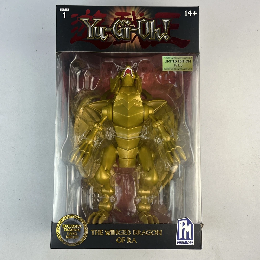 This Yu-Gi-Oh! action figure is a must-have for any fan of the franchise. The PhatMojo Series 1 LE figure features the iconic Winged dragon of Ra, and comes with an exclusive card to enhance your collection. The figure is made by Phatmojo, a trusted brand in the toy industry. It is perfect for display or play, and is sure to impress any Yu-Gi-Oh! enthusiast. Don't miss out on this opportunity to own a piece of the Yu-Gi-Oh! universe.