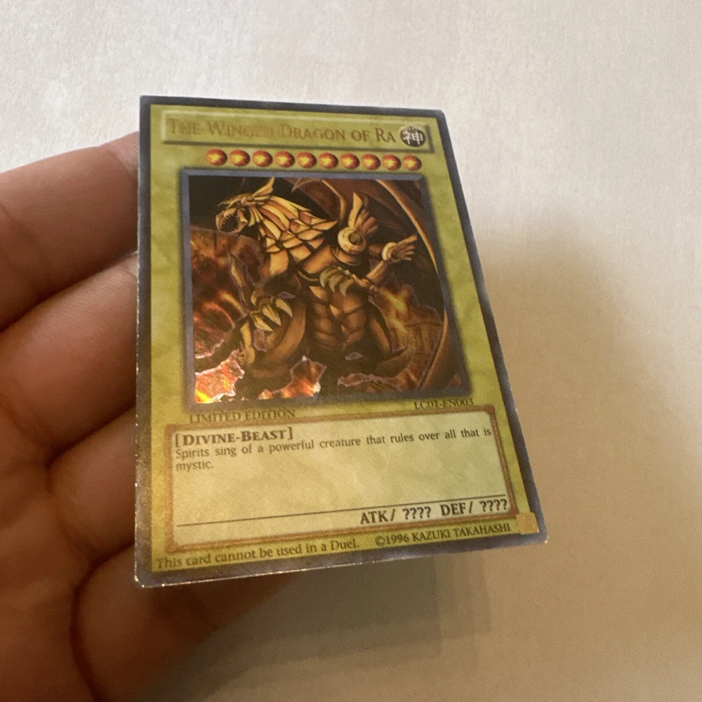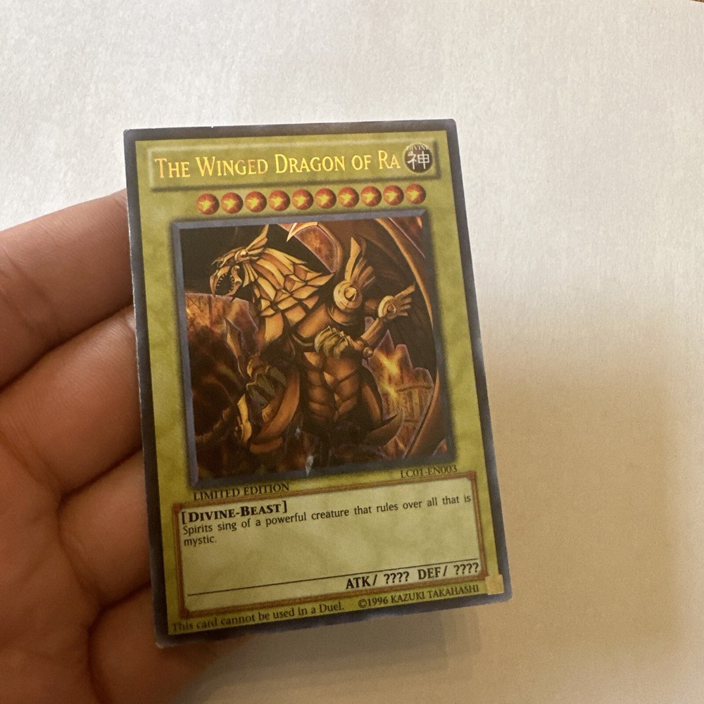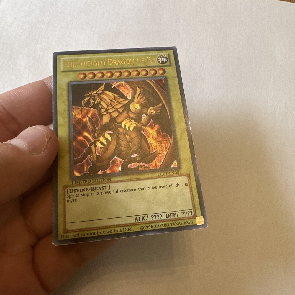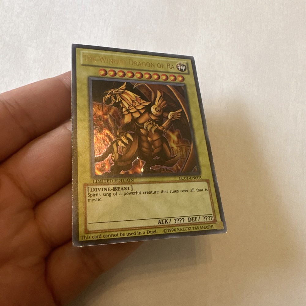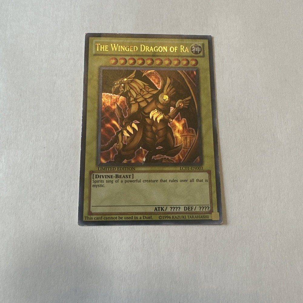 YuGiOh The Winged Dragon of Ra Promos Limited Edition LC01-EN003 1996 Vintage. Please see pictures for condition. You will receive exact card shown. Feel free to ask questions. Final Sale....