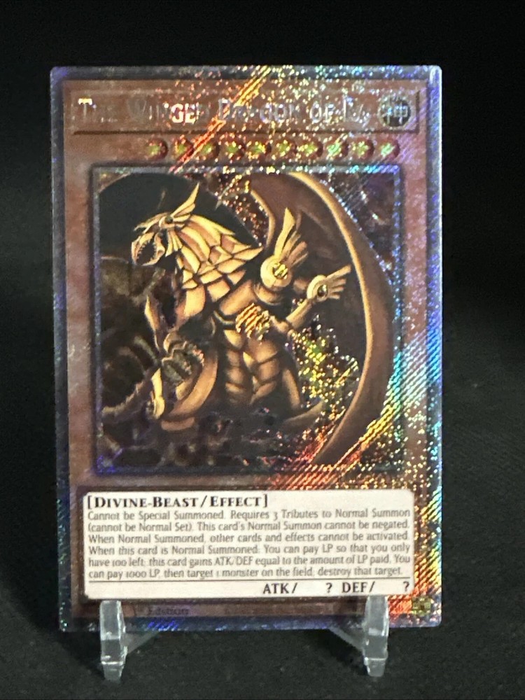You will receive 1x YuGiOh! The Winged Dragon of Ra RA04-EN118 Platinum Secret Rare card exactly as pictured above. Will come in sleeved and in a toploader. The card is Mint/Near Mint, FRESH FROM PACK, NO bends, tears, or creases of any kind. Save on shipping if you buy more than one item, feel free to message me with any questions, thank you & have a nice day!