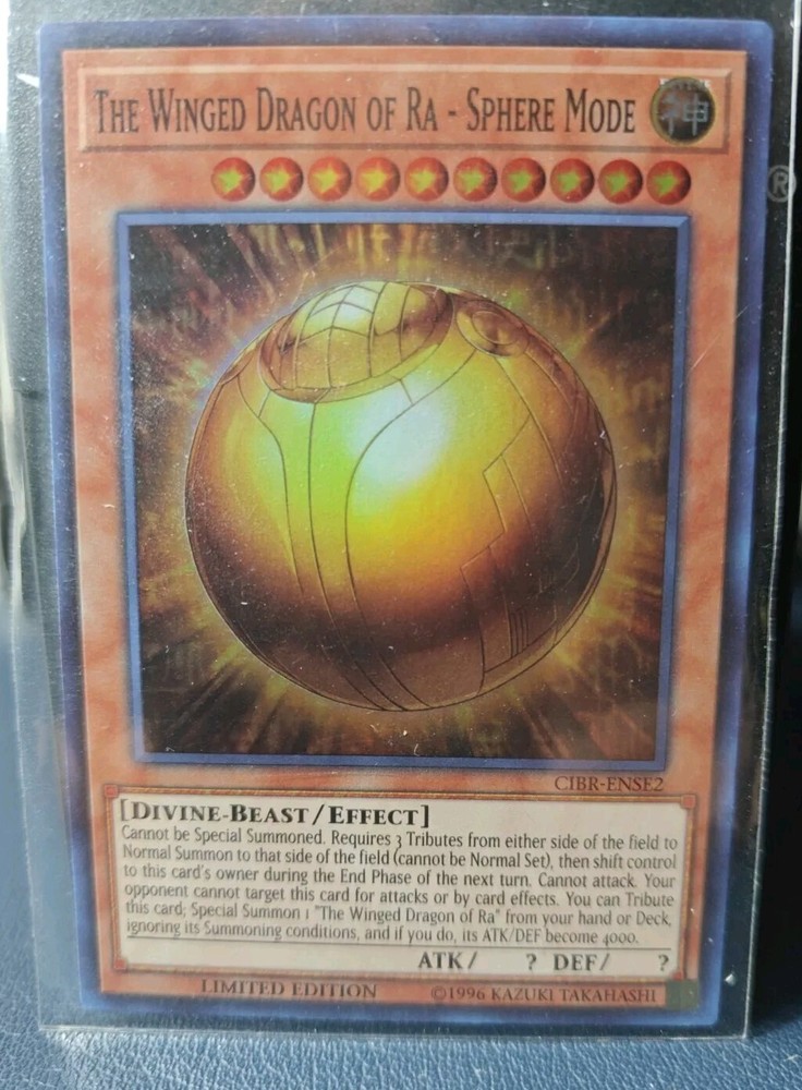 Yu-Gi-Oh! The Winged Dragon of Ra - Sphere Mode CIBR-ENSE2 Limited Super Rare NM: The card is in Near Mint Condition. It will be in a plastic protection and ship in the plain white envelope with delivery information.