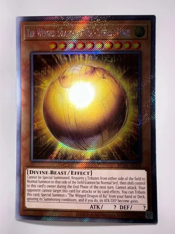 You are buying: The Winged Dragon of Ra - Sphere Mode - RC04-AE008 - Extra Secret Rare - Asian English Cards will be sent in individual sleeves and a top loader.