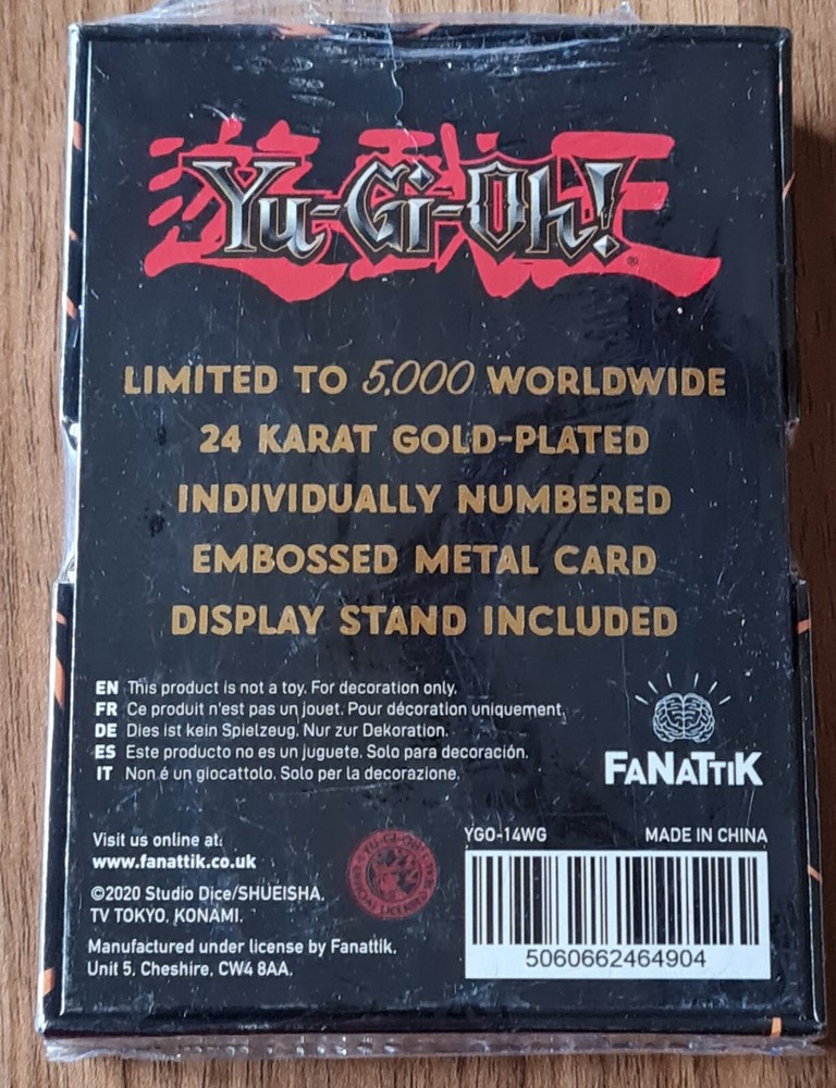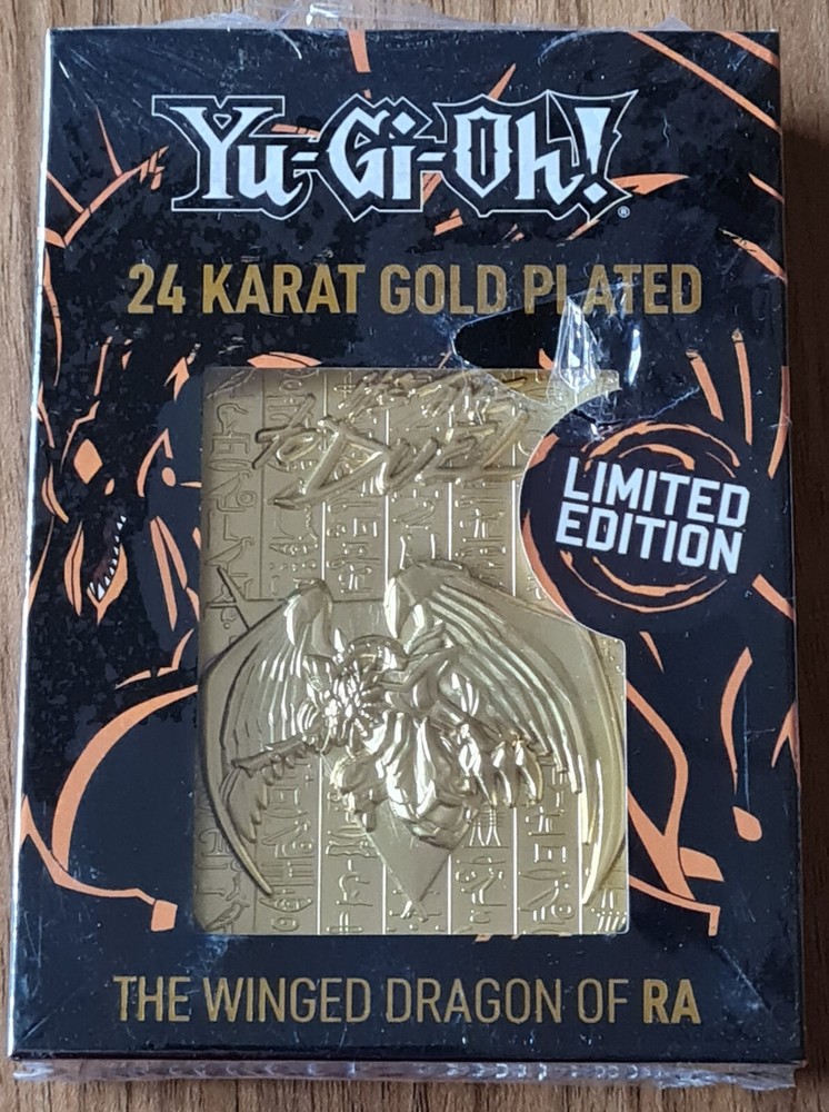 Unopened 24K gold-plated embossed metal display card featuring Winged Dragon Of Ra, around 7cm x 5cm. The outer plastic cover has a few tears, but no box is undamaged....