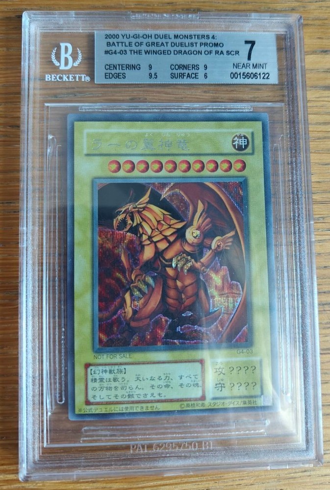 This collectible card is a must-have for any Yu-Gi-Oh!fan. The Winged dragon of Ra, with its stunning artwork and powerful abilities, is sure to impress. This card has a BGS grade of 7. It's perfect for adding to your collection or using in battles. Whether you're a seasoned player or just starting out, this card is a great addition to your deck. Its rarity and unique design make it a valuable find for any collector. Don't miss your chance to own this impressive piece of Yu-Gi-Oh! memorabilia.