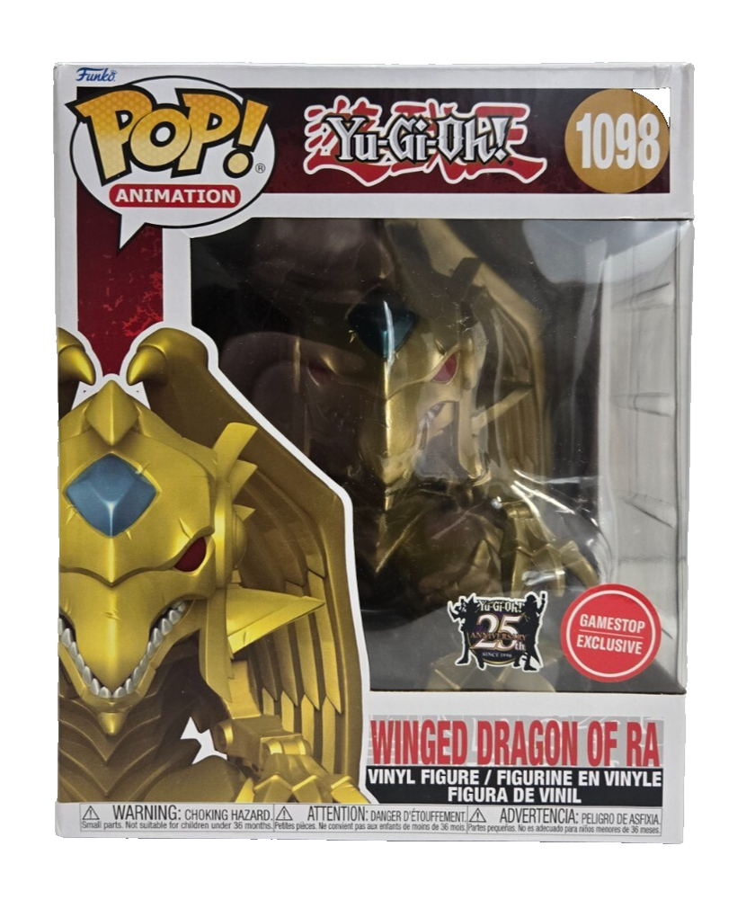 Elevate your collection with the radiant Funko Pop! Winged Dragon of Ra #1098, a GameStop exclusive celebrating the 25th anniversary of the iconic Yu-Gi-Oh! franchise. This golden vinyl figure stands at 6 inches tall, capturing the essence of the powerful deity in stunning detail. Crafted with care from premium vinyl material, the Winged Dragon of Ra Funko POP! is a must-have for enthusiasts of the anime and manga theme. Its unique features boast the exclusivity that collectors value, making it a standout piece in any Pop! Animation collection.