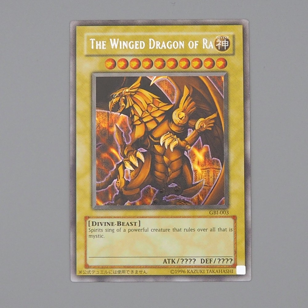 Yu-Gi-Oh Winged Dragon of Ra GBI-003 Secret Rare Promo Near MINT English n649 Description Condition : Near MINT (Please check the photos) [ MINT > Near MINT > Excellent > Very Good > Good > Poor ] Include : Winged Dragon of Ra Edition : GBI-003 Rarity : Secret Rare Shipping [More Than Total $80+] Free Shipping!!! By Japan Post with Tracking Number. Shipping Fee is a flat rate of $6. Free conbined shipping for 2 or more!! International Buyers - Please Note: Import duties, taxes, and charges are not included in the item price or shipping cost. These charges are the buyer's responsibility. Please check with your country's customs office to determine what these additional costs will be prior to bidding or buying.
