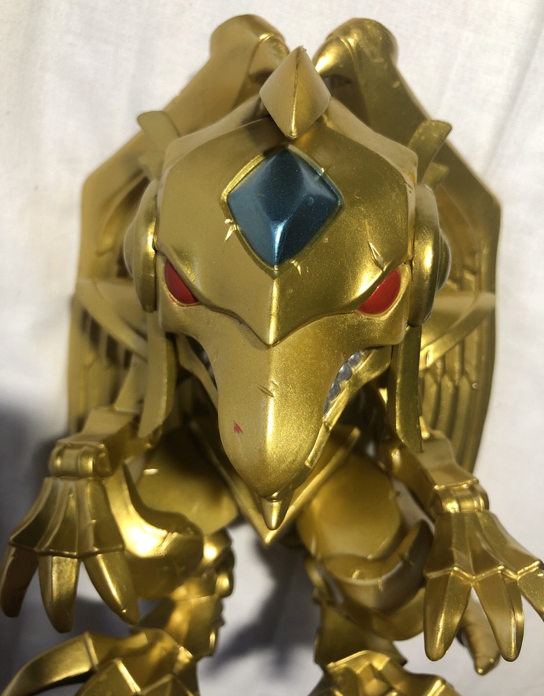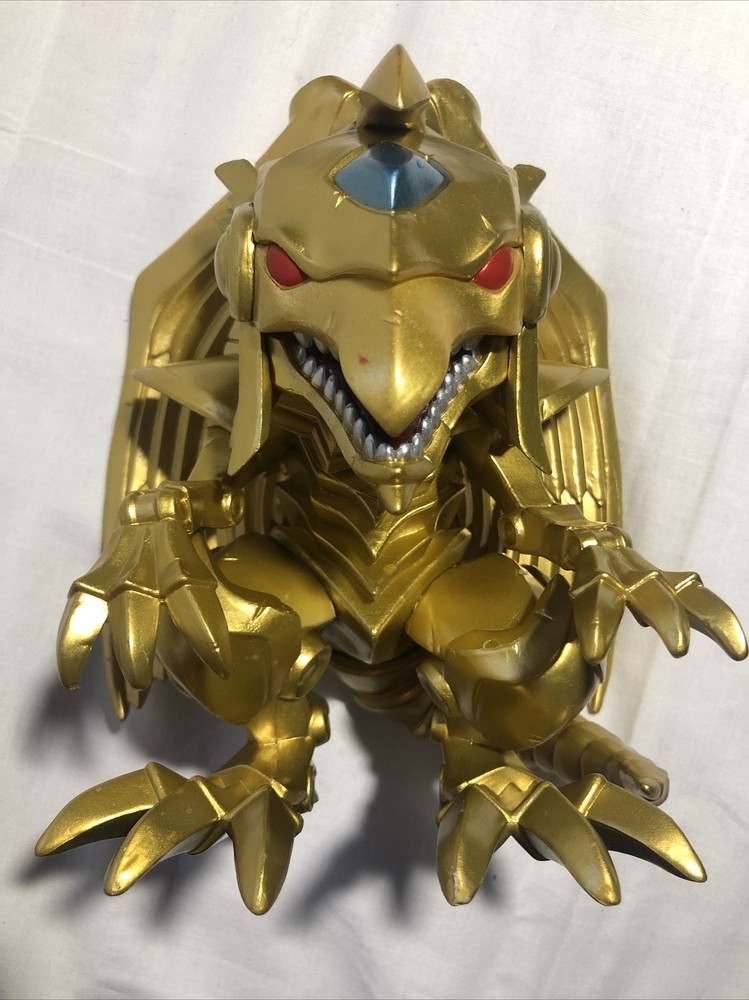 Funko POP! Winged Dragon of Ra #1098 Metallic GameStop Exclusive. GameStop displays that were unused. No packaging Was only at GameStop. The Pop! Animation Metallic Yu-Gi-Oh 6" Winged Dragon of Ra will stand tall in your vinyl figure collection. Collect all your favorite Yu-Gi-Oh characters. Vinyl figure is approximately 6-inches tall and features metallic highlights.