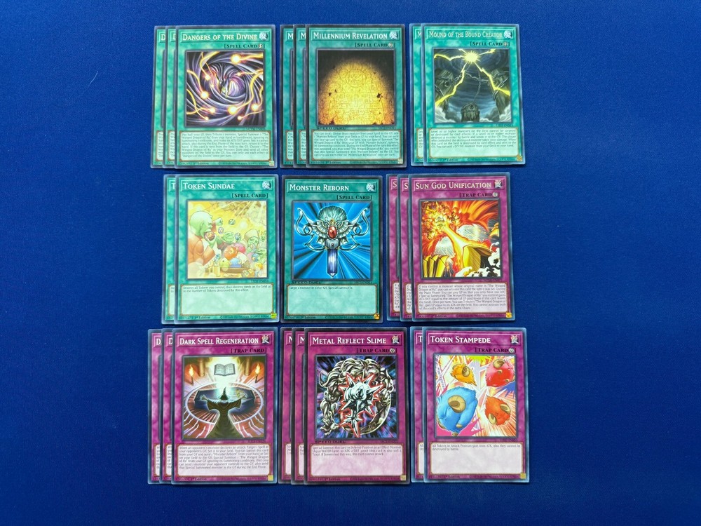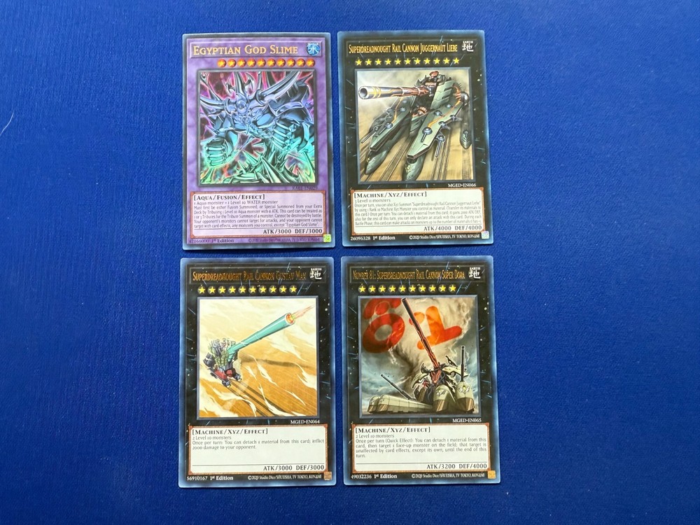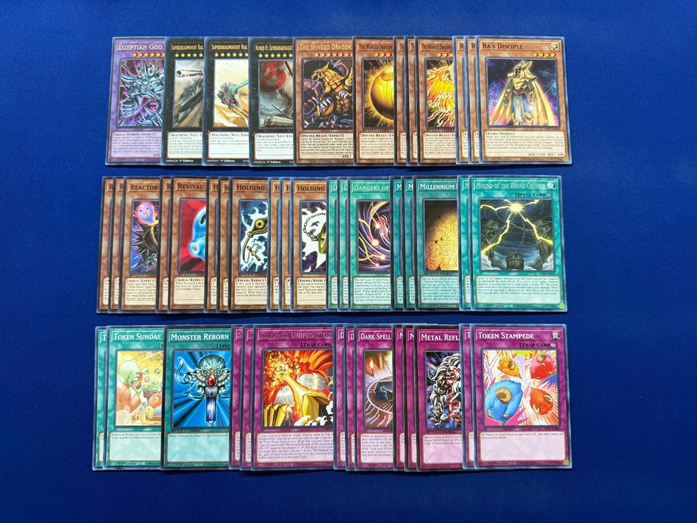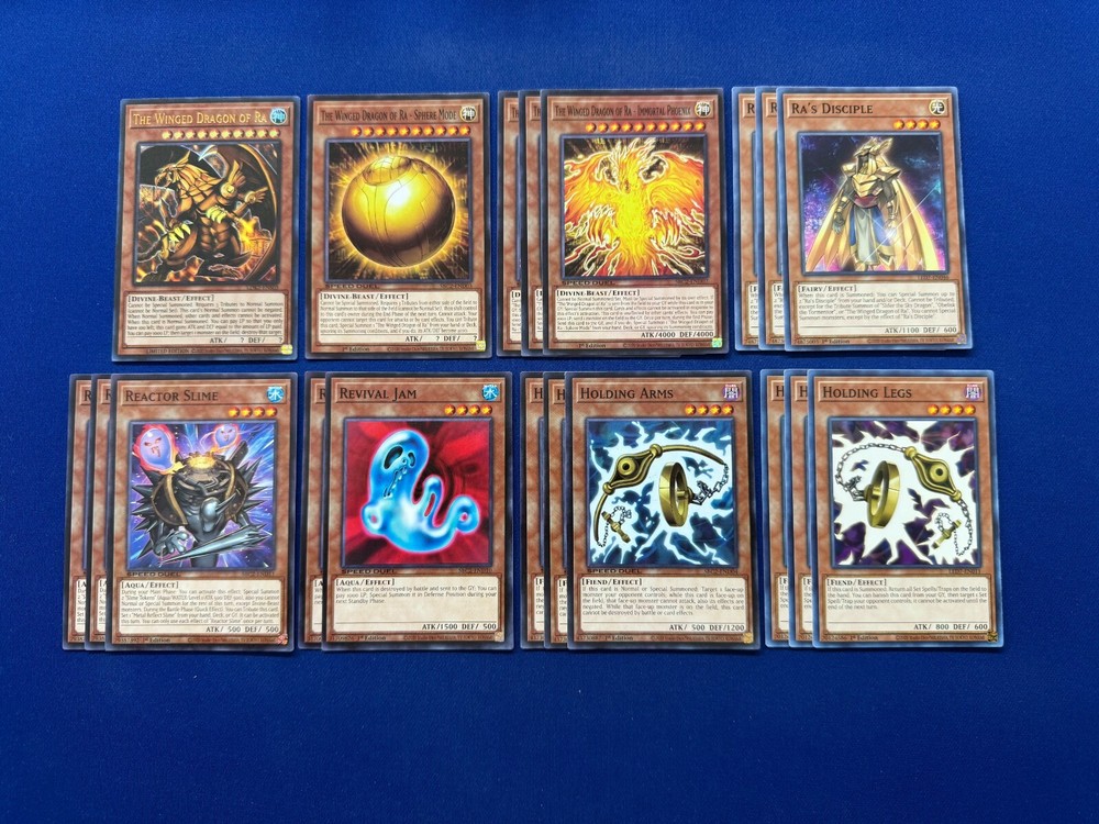 This deck was designed and tested to be ready to play! All cards are in near mint condition (Small chance of lightly played when older cards are involved). By purchasing this item you will receive the following cards: Extra (x4): Egyptian God Slime (x1) - Super Rare Number 81: Superdreadnought Rail Cannon Super Dora (x1) - Rare Superdreadnought Rail Cannon Juggernaut Liebe (x1) - Rare Superdreadnought Rail Cannon Gustav Max (x1) - Rare Monsters (x19): Winged Dragon of Ra (x1) - Ultra Rare The Winged Dragon of Ra - Sphere Mode (x1) - Common The Winged Dragon of Ra - Immortal Phoenix (x3) - Common Ra's Disciple (x3) - Common Holding Arms (x3) - Common Holding Legs (x3) - Common Reactor Slime (x3) - Common Revival Jam (x2) - Common Spell (x11): Dangers of the Divine (x3) - Rare Millennium Revelation (x3) - Common Mound of the Bound Creator (x2) - Common Token Sundae (x2) - Common Monster Reborn (x1) - Common Trap (x11): Sun God Unification (x3) - Rare Dark Spell Regeneration (x3) - Common Metal Reflect Slime (x3) - Common Token Stampede (x2) - Common Shipping and Handling: Both Domestic and International Shipping are offered. All deck items are shipped via First Class Parcel Service (3-5 Days) and comes with tracking. Priority Mail Service (1-3 days) is also offered for Domestic buyers. Price is calculated based on the buyer's location. Payment: Payments are due within 3 days of ordering. Otherwise an Unpaid Item Case will be opened. If you have any questions or concerns, send a message and we'll answer as soon as we can! Please remember to leave feedbeck if you can, especially if you enjoy your purchase! Thank you for your patronage and support!