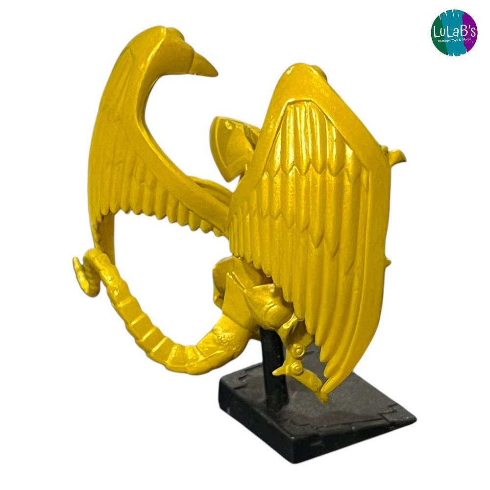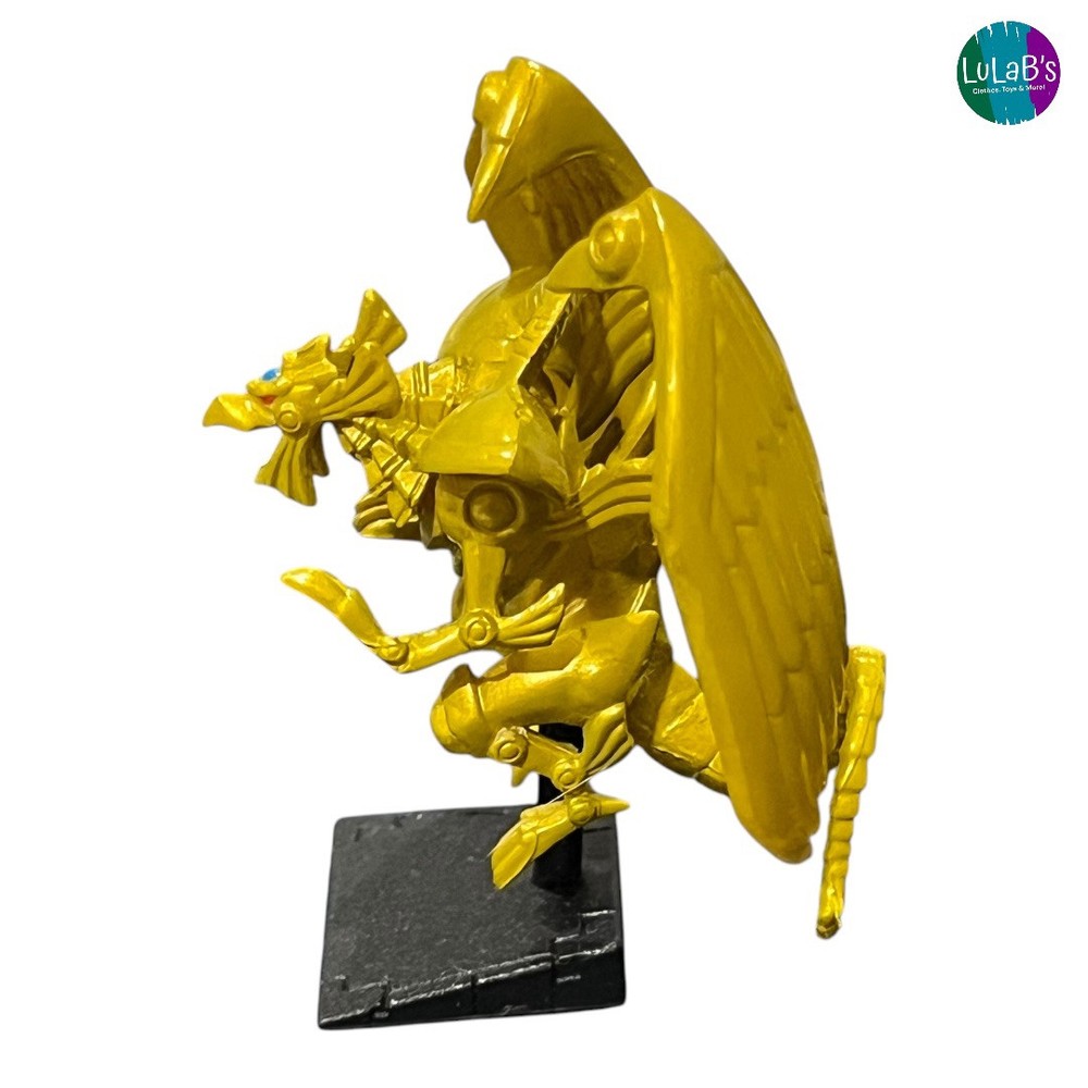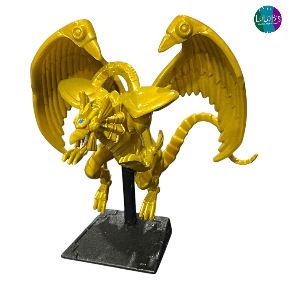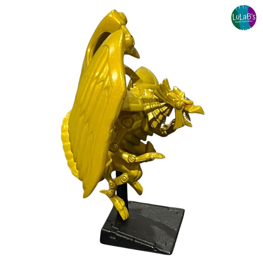 Yu-Gi-Oh the Winged dragon Ra 2" figure Plastic In Black Stand in good used condition. Please See All Photos As They Are Part Of Description. Please Note: This Will Be Shipped With Care In A Poly Bag. Non-Smoking, Boxer Pup Friendly. Cross Listed. BINF This is a vintage Yu-Gi-Oh! action figure of the Winged Dragon Ra, manufactured by KOTOBUKIYA in the 1990s. The 2" black plastic figure comes with a stand and is an original representation of the character from the franchise.