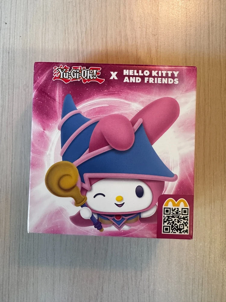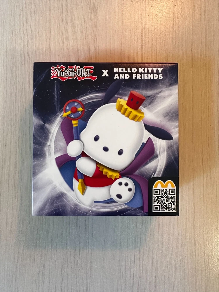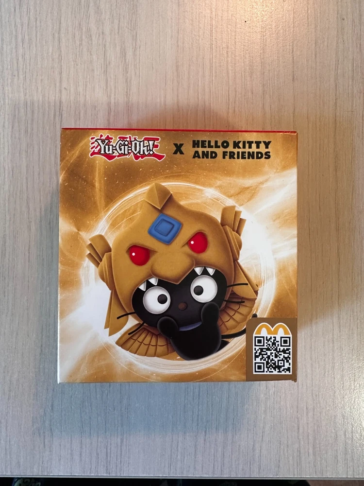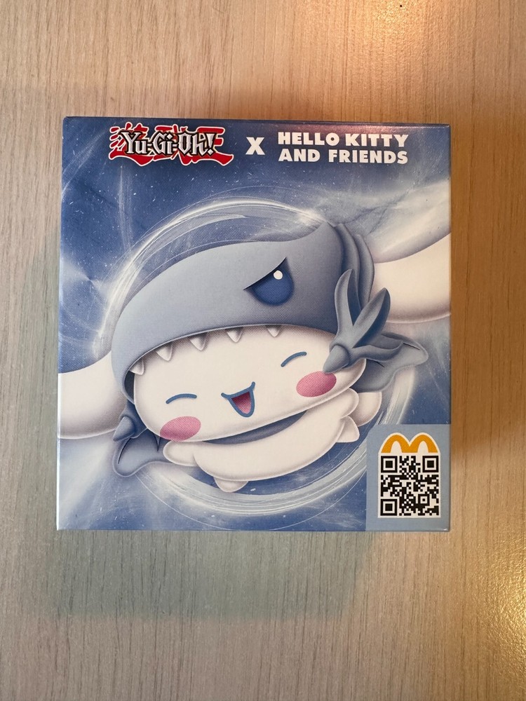 ORIGINAL PACKING AND SEALED. FAST SHIPPING. LIMITED QUANTITIES. Yu-Gi-Oh! x Sanrio Characters in your McDonald's Happy Meal and celebrate 25th anniversary of Yu-Gi-Oh! legacy now. #1 Hello Kitty x Dark Magician #2 Cinnamoroll x Blue-Eyes White Dragon #3 My Melody x Dark Magician Girl #4 Kerokerokeroppi x Kuriboh #5 Pompompurin x Exodia The Forbidden One #6 Bad Badtz-Maru x Red-Eyes Black Dragon #7 Tuxedosam x Obelisk The Tormentor #8 Kuromi x Slifer The Sky Dragon #9 Chococat x The Winged Dragon Of Ra #10 Pochacco x Time Wizard *note: McDonalds cardboard packaging of plushie is very thin and fragile, so it's possible that the cardboard might get bent/damaged during the transition - this shouldn't affect the plushie! I cannot guarantee how post office handles the package, so if you are a collector and value the packaging being perfect condition, this might not be for you.*