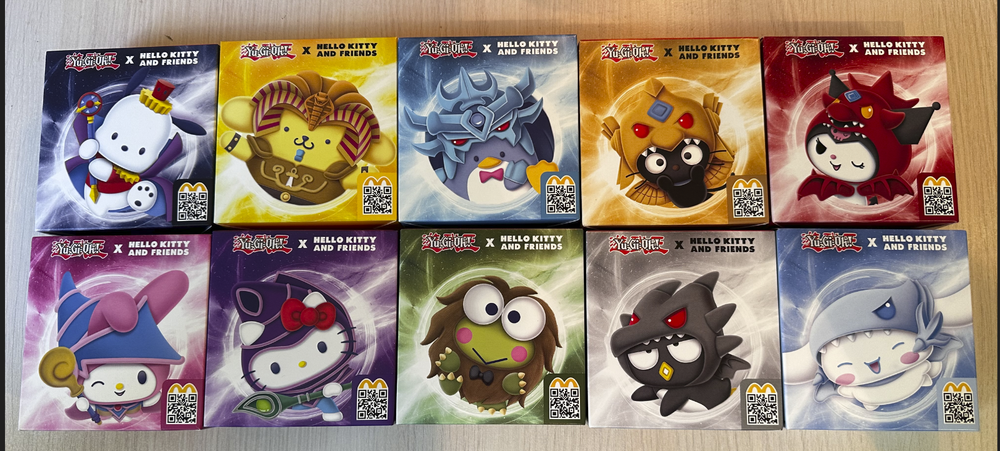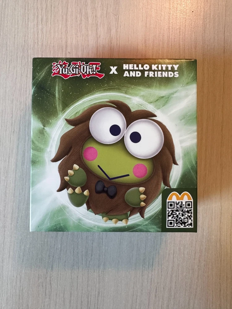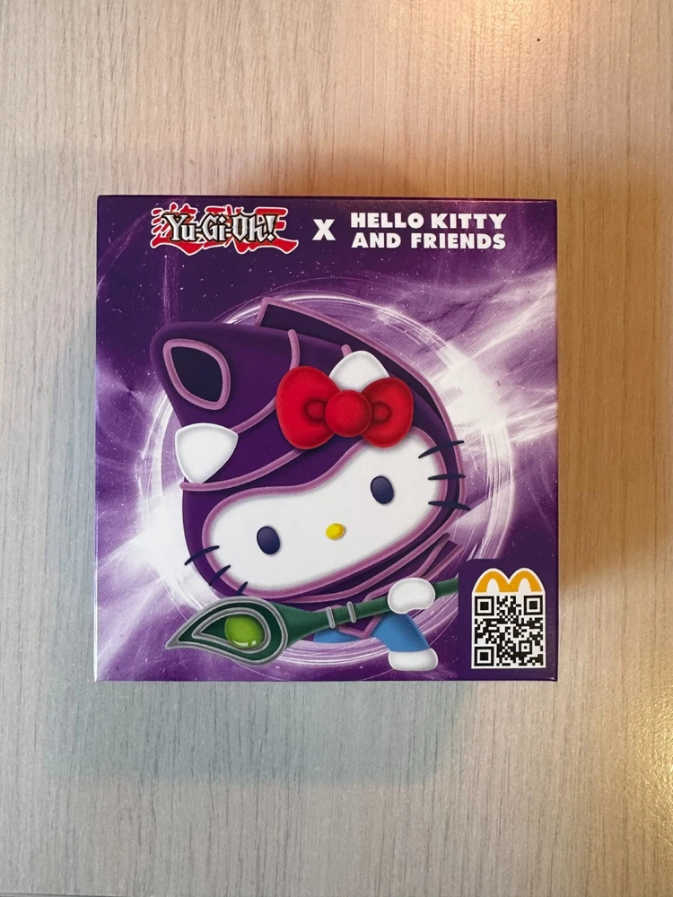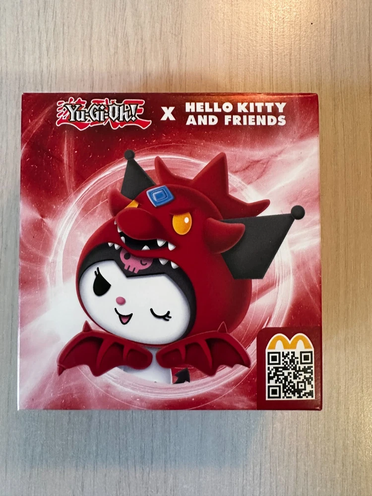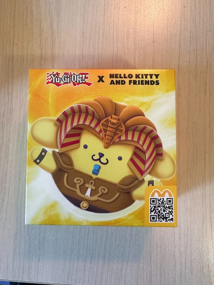 ORIGINAL PACKING AND SEALED. FAST SHIPPING. LIMITED QUANTITIES. Yu-Gi-Oh! x Sanrio Characters in your McDonald's Happy Meal and celebrate 25th anniversary of Yu-Gi-Oh! legacy now. #1 Hello Kitty x Dark Magician #2 Cinnamoroll x Blue-Eyes White Dragon #3 My Melody x Dark Magician Girl #4 Kerokerokeroppi x Kuriboh #5 Pompompurin x Exodia The Forbidden One #6 Bad Badtz-Maru x Red-Eyes Black Dragon #7 Tuxedosam x Obelisk The Tormentor #8 Kuromi x Slifer The Sky Dragon #9 Chococat x The Winged Dragon Of Ra #10 Pochacco x Time Wizard *note: McDonalds cardboard packaging of plushie is very thin and fragile, so it's possible that the cardboard might get bent/damaged during the transition - this shouldn't affect the plushie! I cannot guarantee how post office handles the package, so if you are a collector and value the packaging being perfect condition, this might not be for you.*