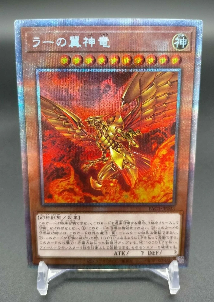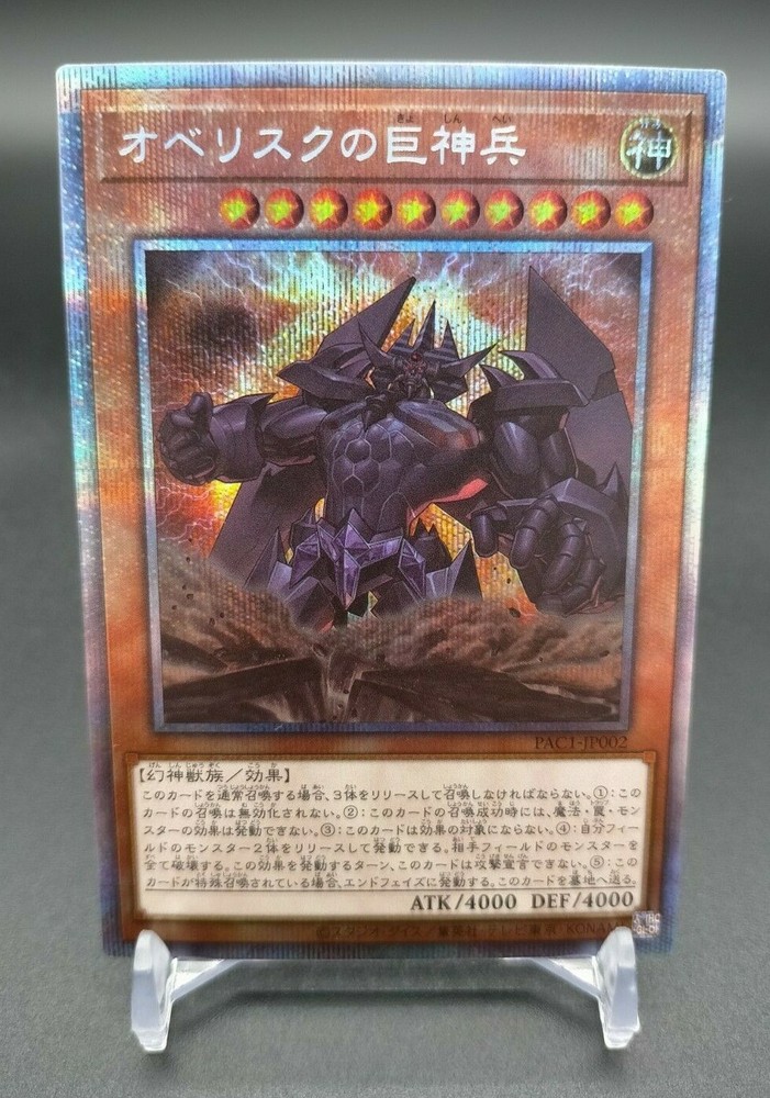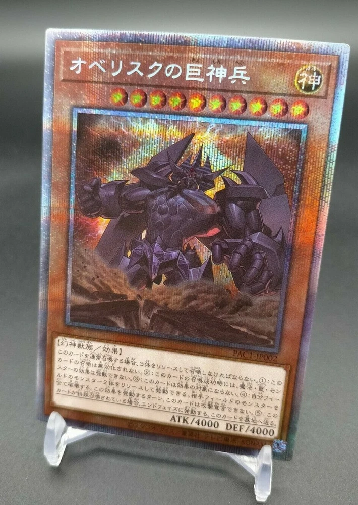 Thank you for looking! Item Description Yu-Gi-Oh! Prismatic Art Collection Three Illusion Gods Slifer The Sky Dragon PAC1-JP001 / Obelisk the Tormentor PAC1-JP0 02 / The Winged Dragon of Ra PAC1-JP00 3 Prismatic Secret Rare Please feel free to contact us if you have any question. Shipping Expedited : FedEx or EMS ( comes with TRACKING NUMBER) Payment We usually ship within 4-10 business days of receiving cleared payment. International Buyers Import duties, taxes and charges are not included in the item price or shipping charges.These charges are the buyer's responsibility.Please check with your country's customs office to determine what these additional costs will be prior to bidding/buying. These charges are normally collected by the delivering freight (shipping) company or when you pick the item up do not confuse them for additional shipping charges. Please let me know if there are any defects in the product. I'll do my best to solve the problem. I do not mark merchandise values below value or mark items as "gifts" Thank you for your understanding :)