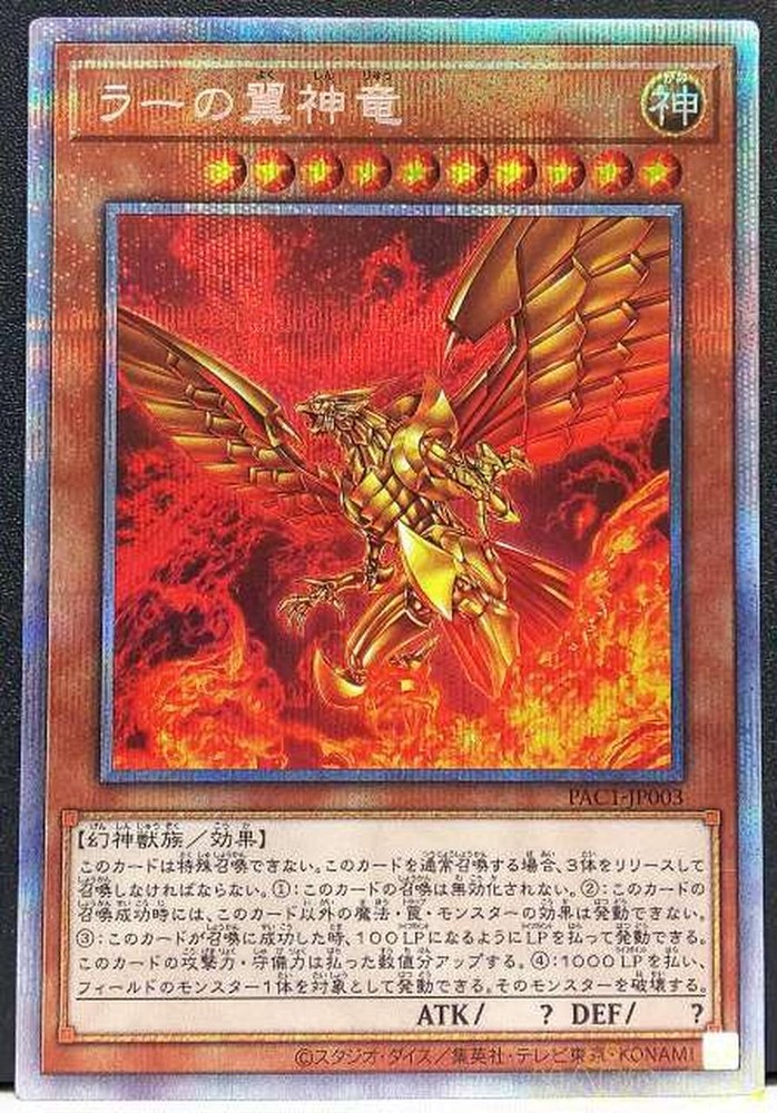 Yu-Gi-Oh!The Winged Dragon of Ra Prismatic Secret Rare PAC1-JP003 Japanese 2021 Description Thank you for looking at my items. I am a seller who sells a lot of great Japanese items. Please look at my other items if you like. Please feel free to contact us if you have any question. Please see the details of the picture before you buy it. Please purchase only those who have consented. I will send it directly from Japan. Payment Payment must be made within 2 days of purchase. Shipping We will carefully deliver using the packing material. It will be delivered by the service of FedEx,DHL,Japan Post +++Shipping Duration+++ 1 week~4 weeks Returns Returns are accepted ONLY if the item was not the item described. International Buyers - Please Note: * Import duties, taxes and charges are not included in the item price or shipping charges. These charges are the buyer's responsibility. * Please check with your country's customs office to determine what these additional costs will be prior to bidding/buying. * These charges are normally collected by the delivering freight (shipping) company or when you pick the item up - do not confuse them for additional shipping charges. * We do not mark merchandise values below value or mark items as "gifts" - US and International government regulations prohibit such behavior.