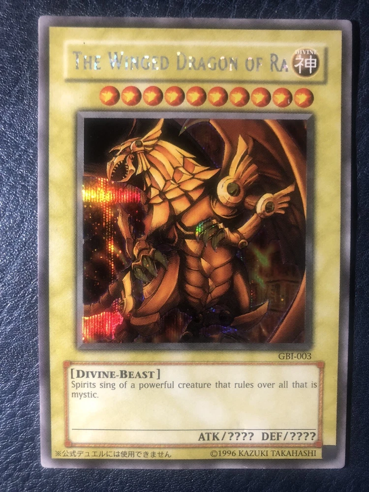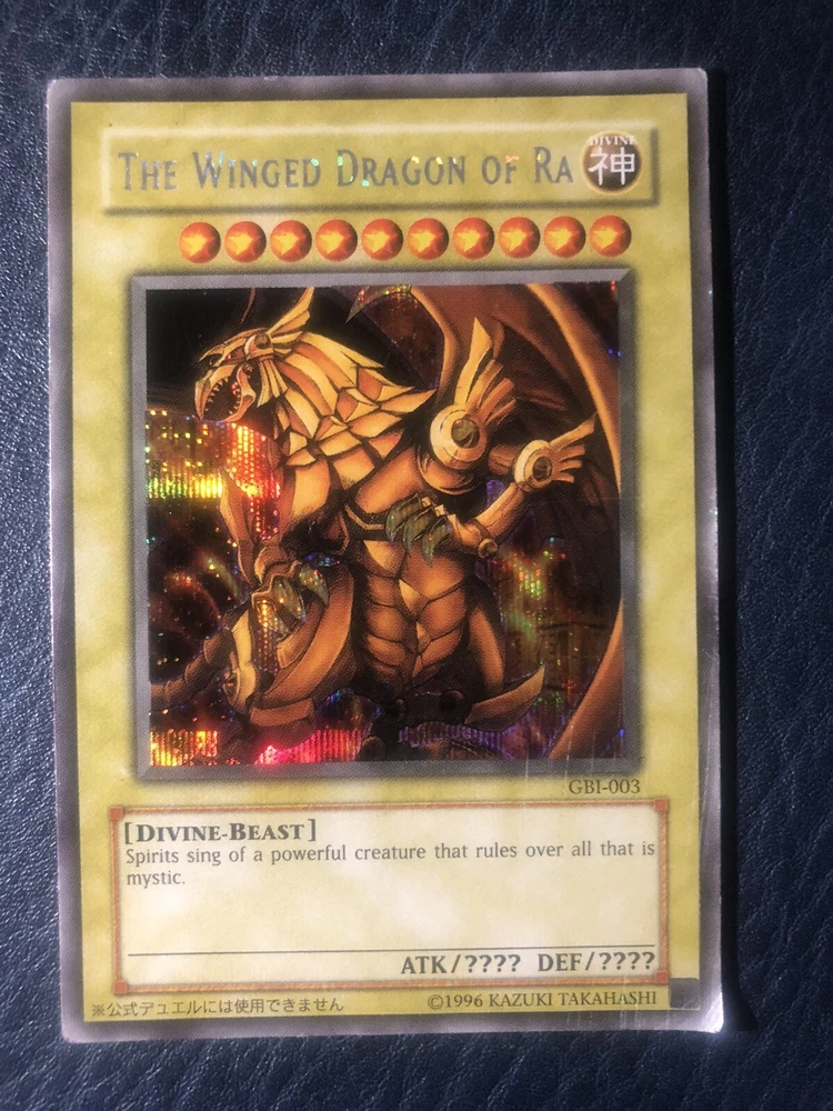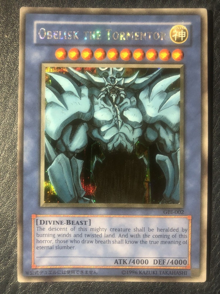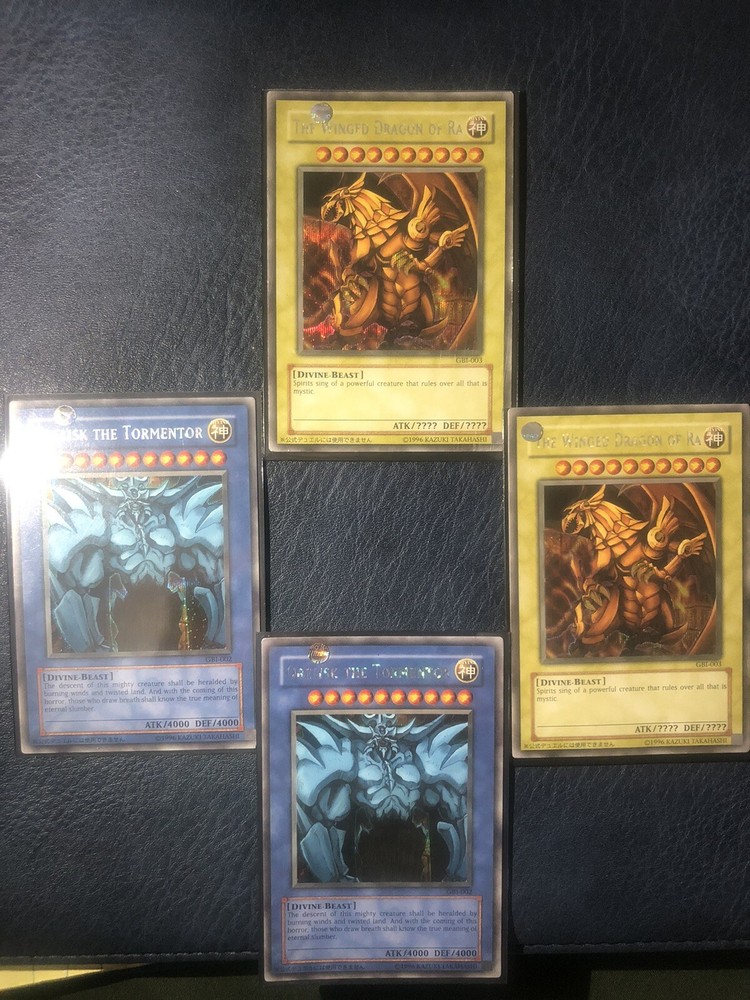 Yugioh GBI-002 2 Obelisk the Tormentor + 2 The Winged Dragon of Ra GBI-003 secret Rare used