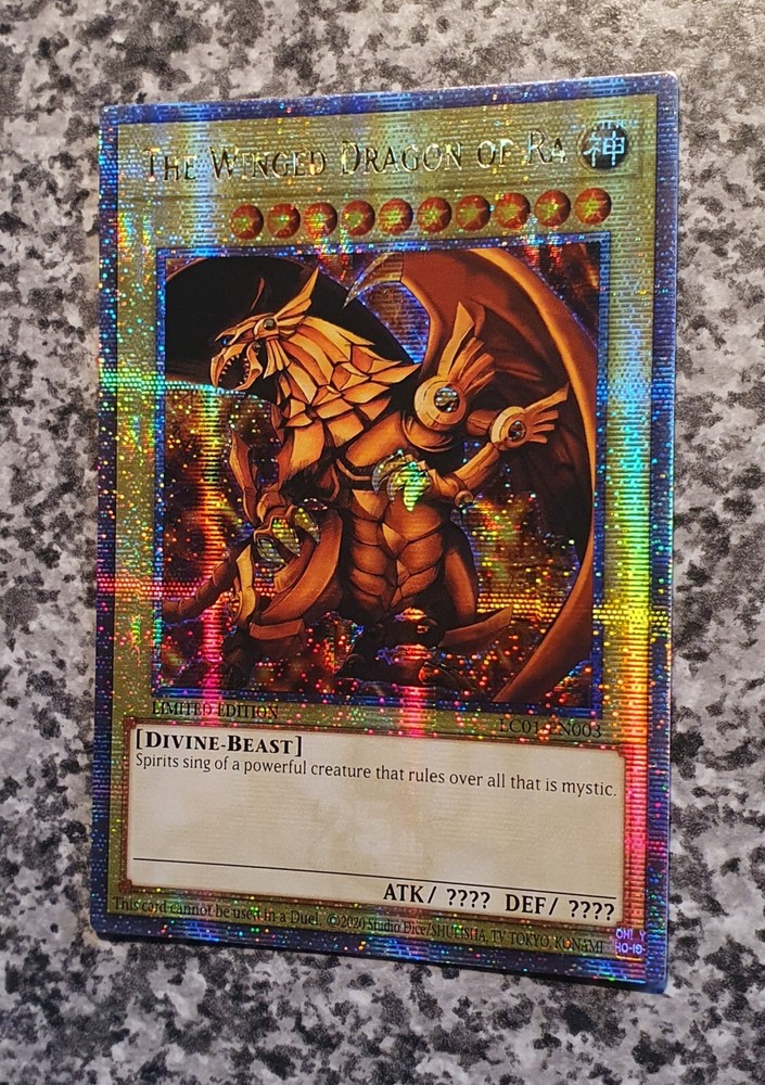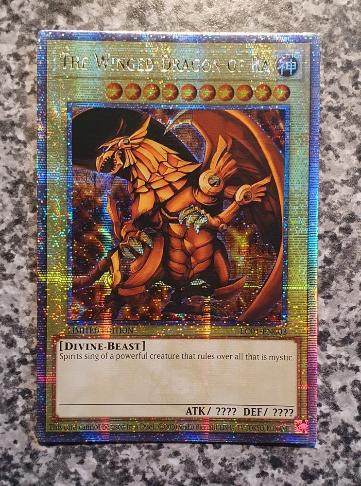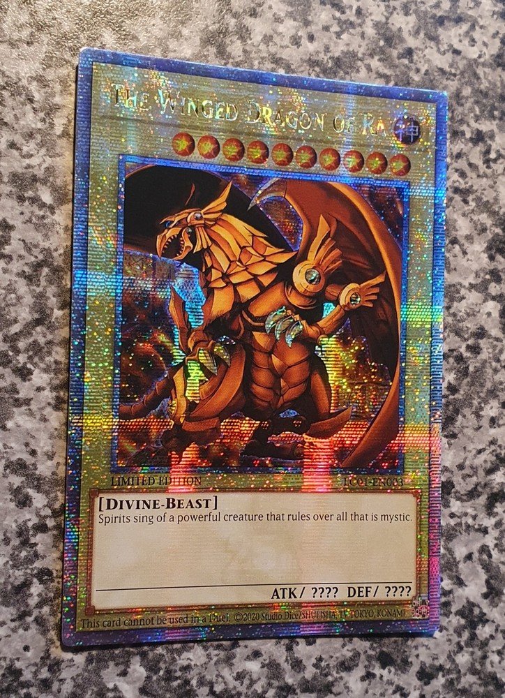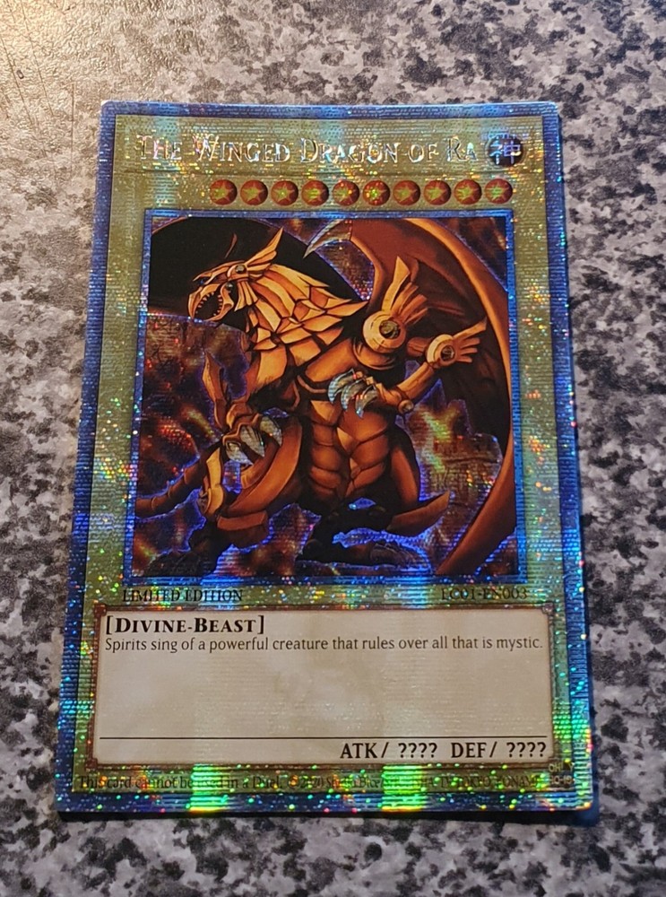 MISPRINT QCSE ATTRIBUTE ERROR instead of English DIVINE is Germany GÖTTLICH The Winged Dragon of Ra LC01-EN003 Quarter Century Secret Rare Limited Edition Legendary Collection: 25th Anniversary Edition Condition: MINT see original pictures Thank you for your support!!! Thank you for your support!!!