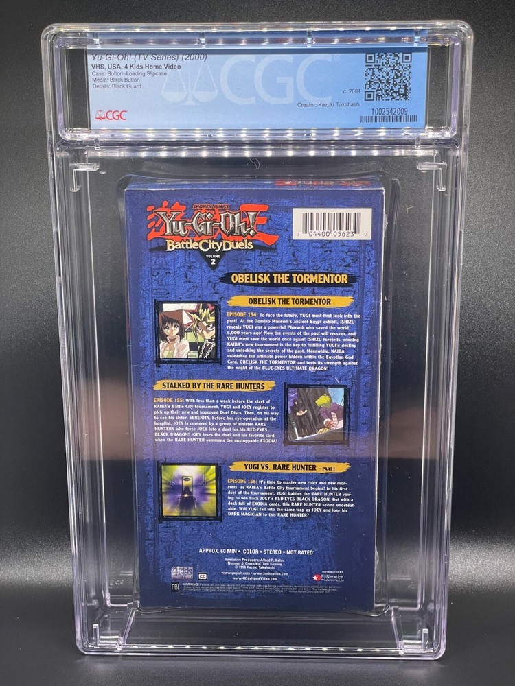 You are bidding on this item a Yugioh Battle City Duels Vol. 2 Obelisk the Tormentor Factory Sealed Graded VHS Tape CGC 9.6 Seal A+ if you have any questions please message me....