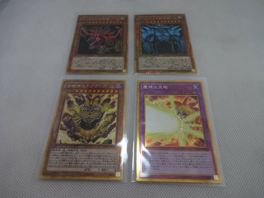 Yugioh Card "Millennium Gold Rare" 4 Set Description Thanks for visiting. I always do my best. I do package very well for my buyers to receive it in an excellent condition. This product is Yugioh Card "Millennium Gold Rare" 4 Set. It was included in Konami's MILLENNIUM BOX GOLD EDITION released in 2014. There are no noticeable scratches. Set Contents MB01-JPS01 Slifer The Sky Dragon MB01-JPS02 Obelisk The Tormentor MB01-JP001 The Legendary Exodia Incarnate MB01-JP003 Obliterate!!! (Exod Flame) Payment I accept PayPal payment. After the winner of the bid will be decided, they will have settle the payment via PayPal within 3 days. Please refrain from bidding if these conditions are impossible for you. International Buyers? Please Note These charges are the buyer's responsibility. Please check with your country's customs office to determine what these additional costs will be prior to bidding / buying. These charges are only collected by the delivering freight (shipping) company or when you pick the item up do not confuse them for additional shipping charges. I do not mark merchandise values below value or mark items as "gifts"? US and International government regulations prohibit such behavior. Shipping Economy shipment is no tracking & no insured. If package is lost or damaged during shipment, item can not be replaced or refunded fully. If you are concerned about loss or damage of package, please choose Expedited shipment (EMS). I always send the package to the post office within 3 business days when I receive your payment through PayPal. (Except Sunday and Holiday) Please be careful because I will only ship to the address registered in PayPal. Cancellations & Returns Cancellation or returns will be accepted only if the item has an obvious problem that was not mentioned in the listing description. If that, Please let me know within 3 days you got the item. Buyer is responsible for shipping costs and any charge incurred shipping products back. International Buyers - Please Note: Import duties, taxes, and charges are not included in the item price or shipping cost. These charges are the buyer's responsibility. Please check with your country's customs office to determine what these additional costs will be prior to bidding or buying.