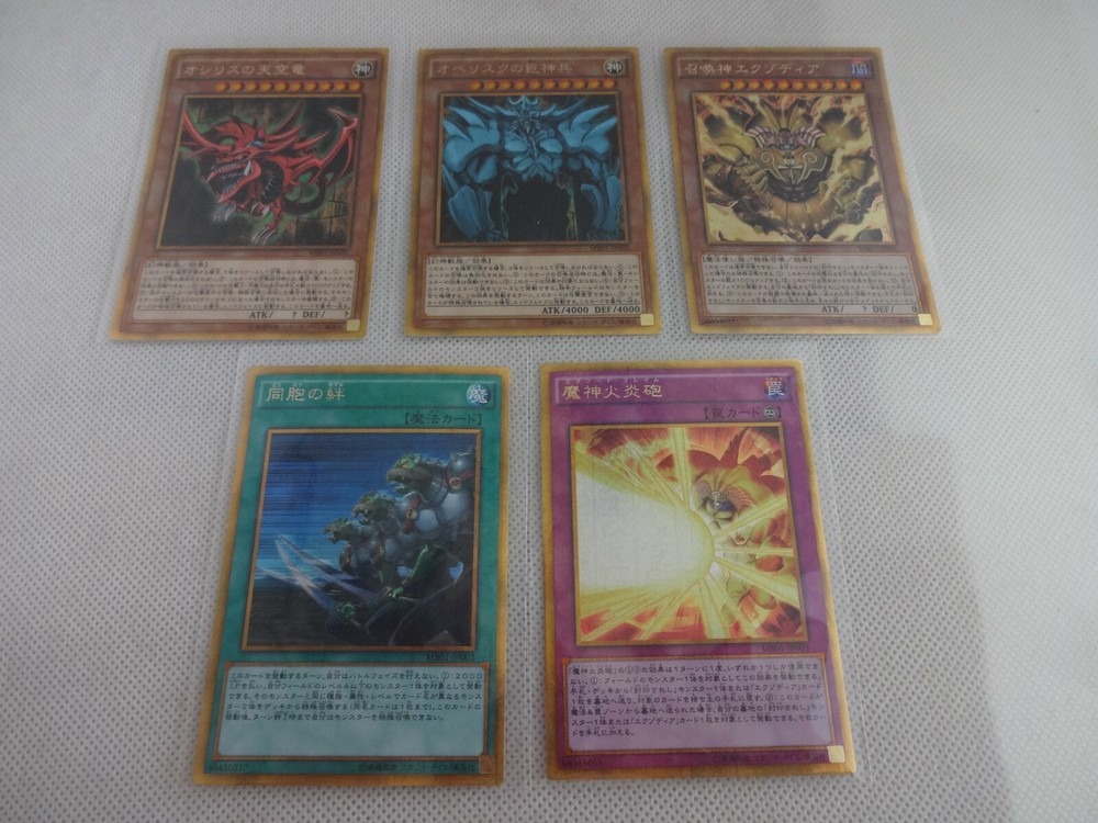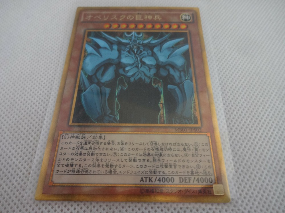 Yugioh Card "Millennium Gold Rare" 5 Set Description Thanks for visiting. I always do my best. I do package very well for my buyers to receive it in an excellent condition. This product is Yugioh Card "Millennium Gold Rare" 5 Set. It was included in Konami's MILLENNIUM BOX GOLD EDITION released in 2014. There are no noticeable scratches. Set Contents MB0 1-JPS01 Slifer The Sky Dragon MB01-JPS02 Obelisk The Tormentor MB01-JP001 The Legendary Exodia Incarnate MB01-JP002 Ties Of The Brethren MB01-JP003 Obliterate!!! (Exod Flame) Payment I accept PayPal payment. After the winner of the bid will be decided, they will have settle the payment via PayPal within 3 days. Please refrain from bidding if these conditions are impossible for you. International Buyers? Please Note These charges are the buyer's responsibility. Please check with your country's customs office to determine what these additional costs will be prior to bidding / buying. These charges are only collected by the delivering freight (shipping) company or when you pick the item up do not confuse them for additional shipping charges. I do not mark merchandise values below value or mark items as "gifts"? US and International government regulations prohibit such behavior. Shipping Economy shipment is no tracking & no insured. If package is lost or damaged during shipment, item can not be replaced or refunded fully. If you are concerned about loss or damage of package, please choose Expedited shipment (EMS). I always send the package to the post office within 3 business days when I receive your payment through PayPal. (Except Sunday and Holiday) Please be careful because I will only ship to the address registered in PayPal. Cancellations & Returns Cancellation or returns will be accepted only if the item has an obvious problem that was not mentioned in the listing description. If that, Please let me know within 3 days you got the item. Buyer is responsible for shipping costs and any charge incurred shipping products back. International Buyers - Please Note: Import duties, taxes, and charges are not included in the item price or shipping cost. These charges are the buyer's responsibility. Please check with your country's customs office to determine what these additional costs will be prior to bidding or buying.