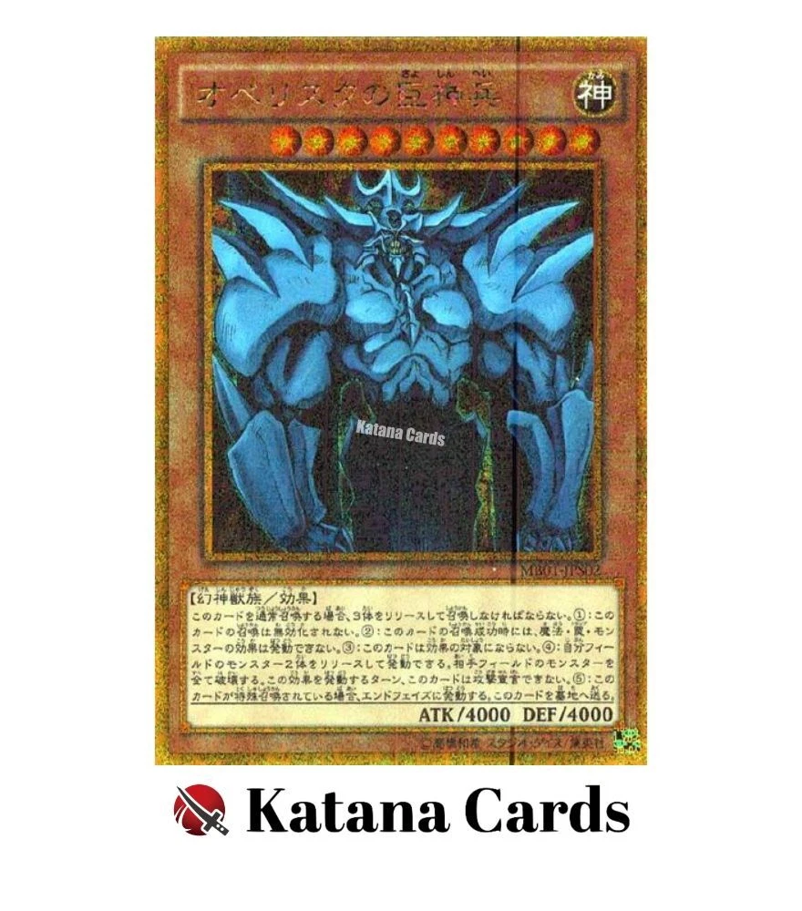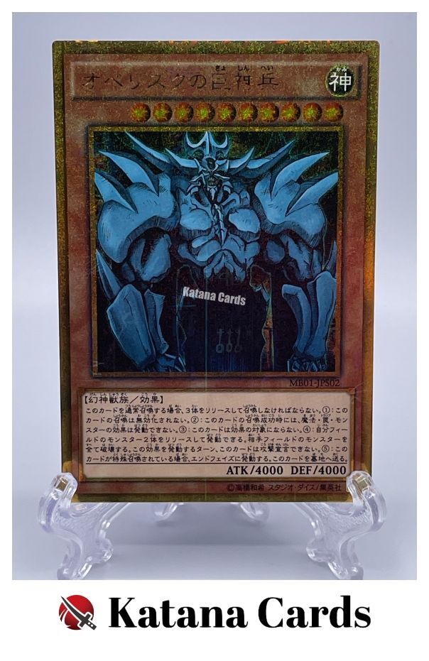 Yugioh Cards | Obelisk the Tormentor Millennium Gold Rare | MB01-JPS02 Japanese C ondition Near Mint to Excellent Yugioh Cards Check our Yugioh cards here. D iscounts!!! Buy more than 3 cards in my store, Save $2 for each cards. Buy 3 cards, save $6 altogether. Buy 4 cards, save $8 altogether. Buy 5 cards, save $10 altogether and so on. Yugioh Cards Check our Yugioh cards here. Discounts are applied automatically by simply adding the product to your cart! S hipping We usually ship within 3 - 5 business days of receiving cleared payment. Economy Shipping - No Tracking Number - It takes 7 - 30 days after shipment. Expedited Shipping - Tracking Number - It takes 3 - 10 days after shipment. If you buy more than 2 cards and choose Expedited Shipping, please select Expedited Shipping for just 1 item. We will ship the items in one package. P ayment We can be contacted at any time through eBay messages if you have any questions, comments or product requests. We will respond to you within 24 hours and do our best to help you out! We encourage our customers to contact us with any questions or concerns! We'd like to be sure you are completely satisfied with your purchase. We do not mark merchandise values below value or mark items as gifts. US and International government regulations prohibit such behavior. I nternational Buyers - Please Note Import duties, taxes, and charges are not included in the item price or shipping cost. These charges are the buyers responsibility. Please check with your country's customs office to determine what these additional costs will be prior to bidding or buying.
